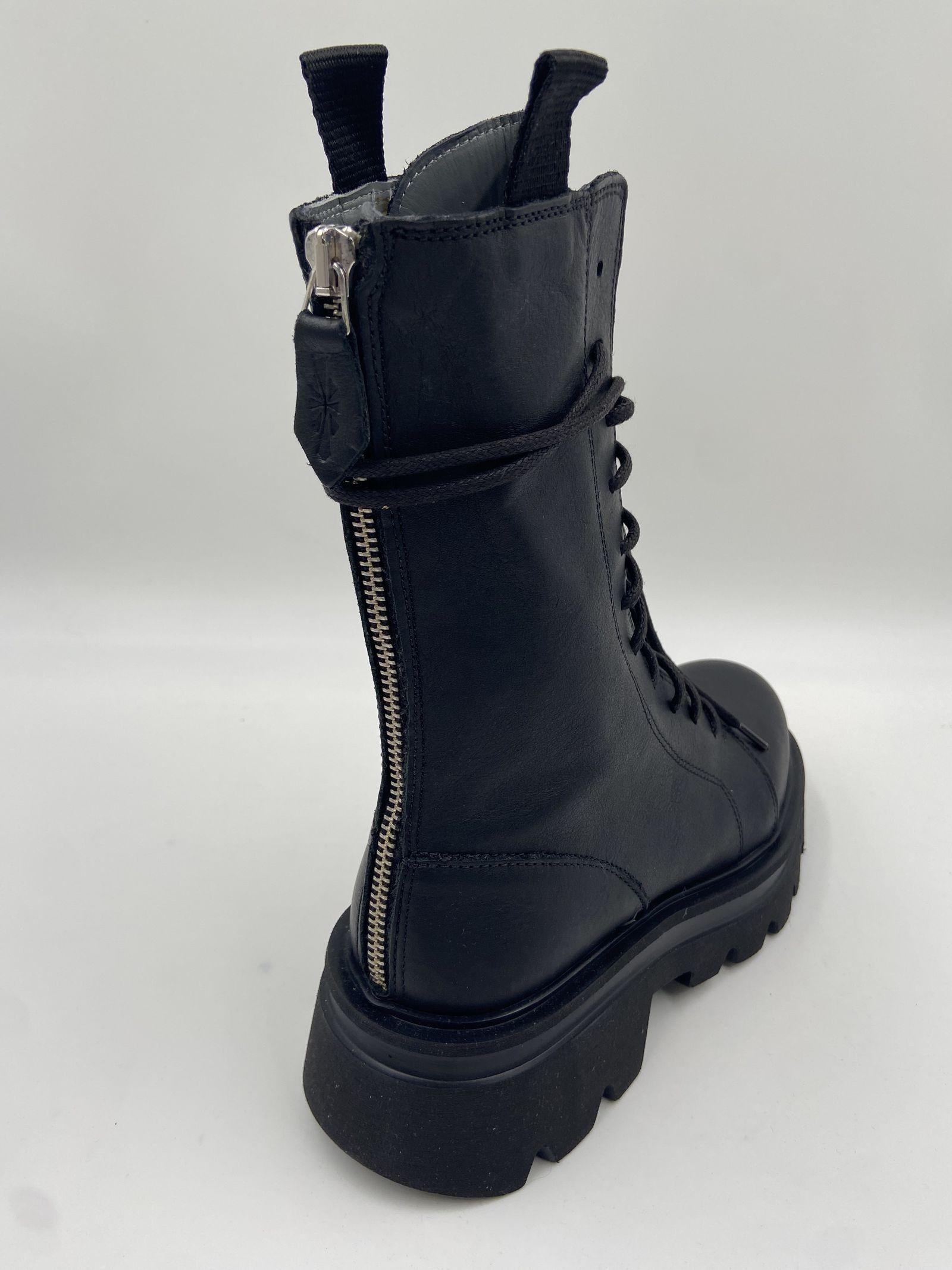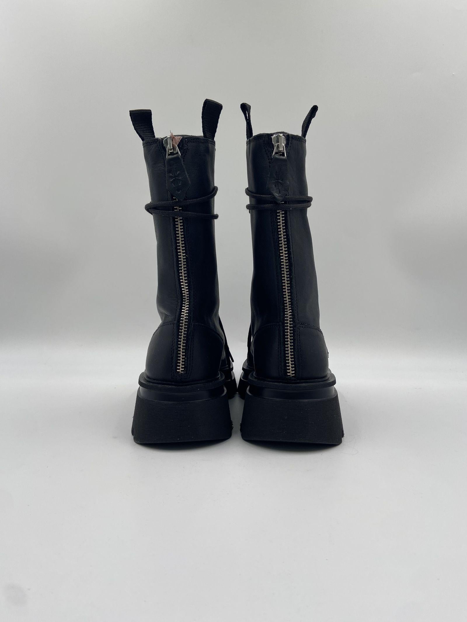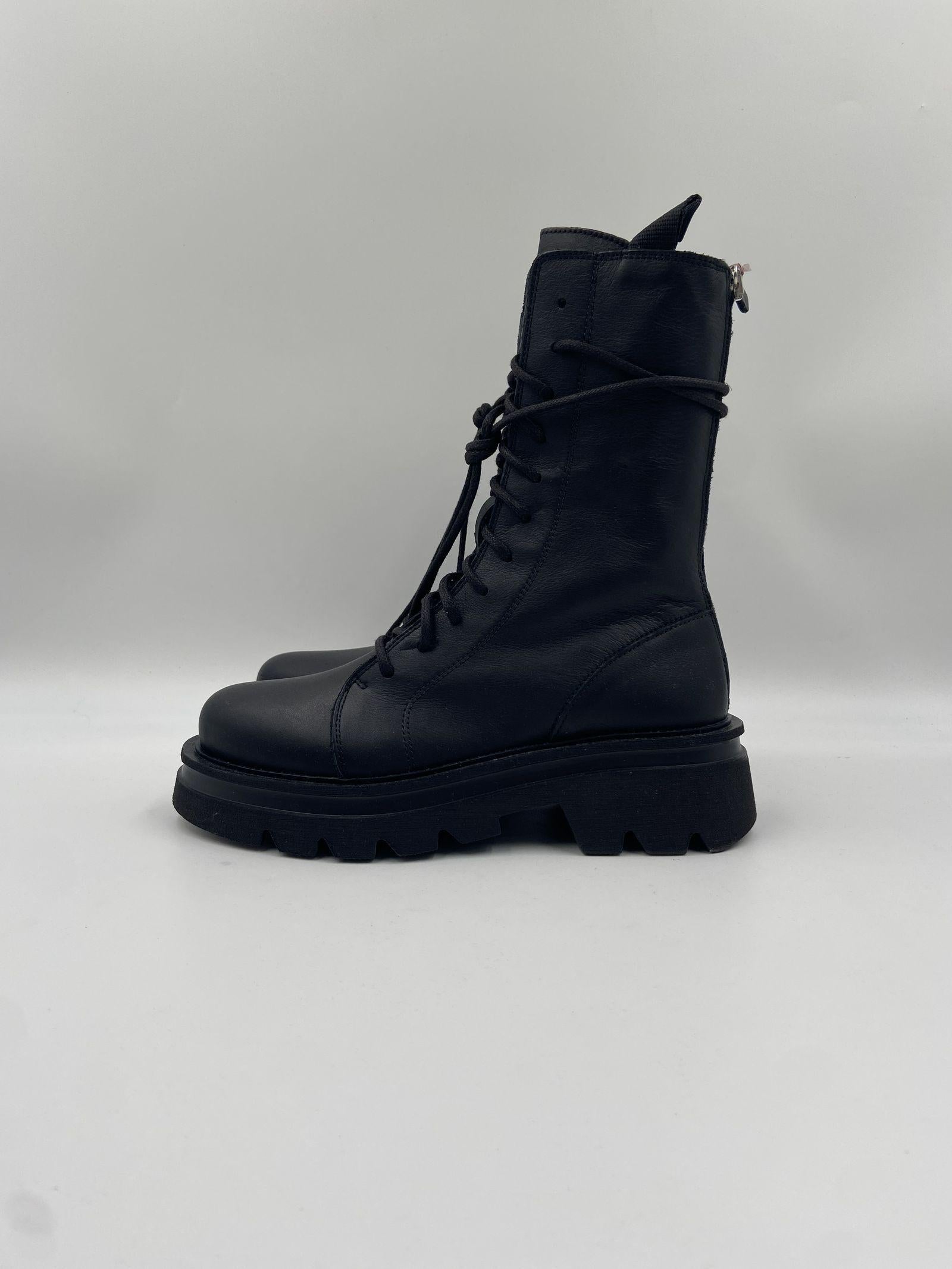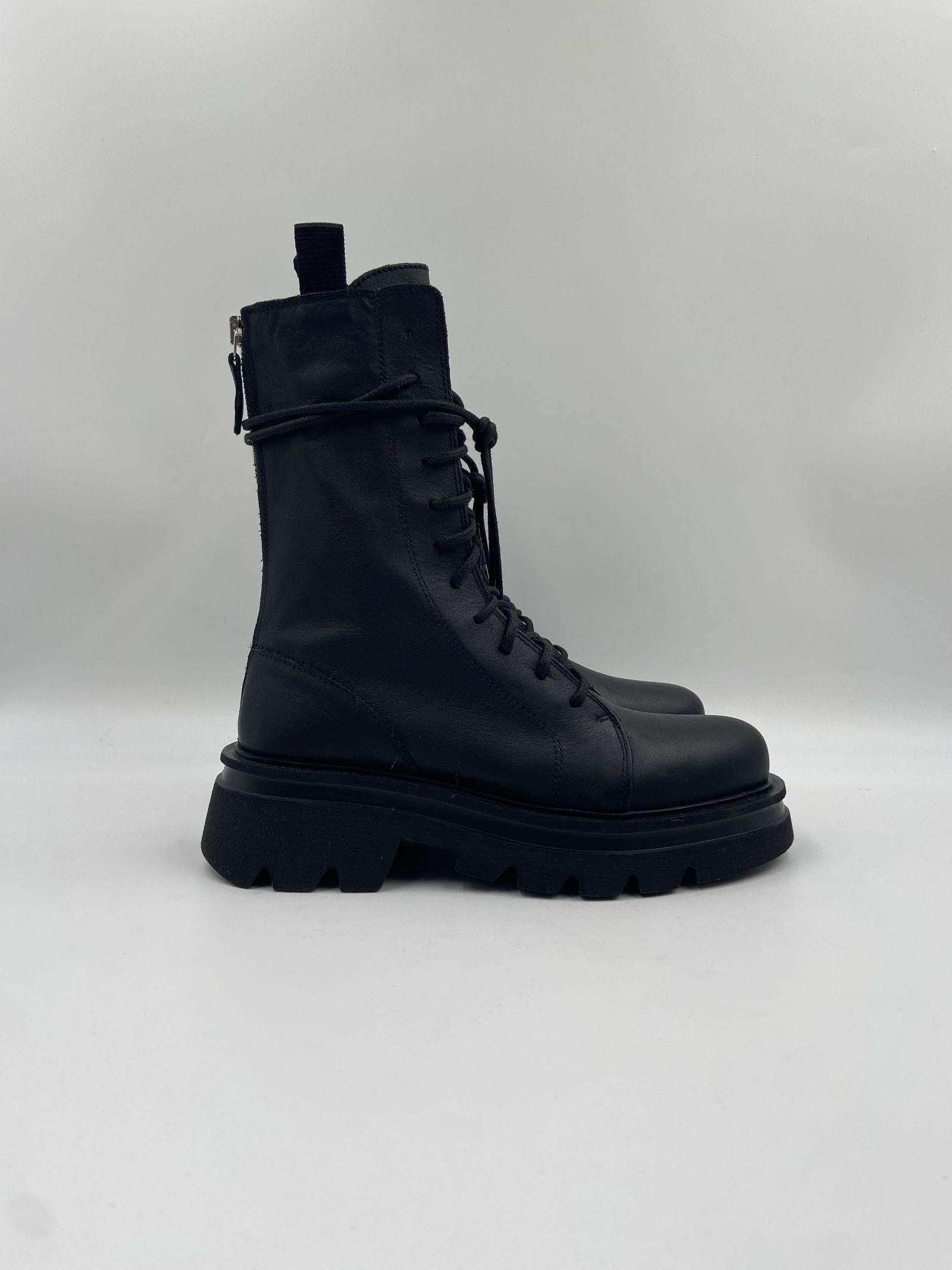 I combat boots Scorpio sono anfibi allacciati realizzati in morbida pelle nera, pensati per chi desidera un look audace ma raffinato. Con una silhouette che si eleva sopra la caviglia, questi stivaletti si distinguono per la loro linea pulita e minimal, in perfetto equilibrio tra grinta e stile chic. Dotati di zip posteriore e pratici tiranti laterali, garantiscono una calzata comoda e veloce, mentre la suola Noriko in gomma dentellata offre stabilità e comfort in ogni situazione. Laltezza del tacco di 45 mm, il platform di 25 mm e la battuta di 15 mm assicurano slancio e sostegno senza rinunciare alla comodità. La punta rotonda e linterno in pelle completano il design con un tocco di eleganza essenziale.