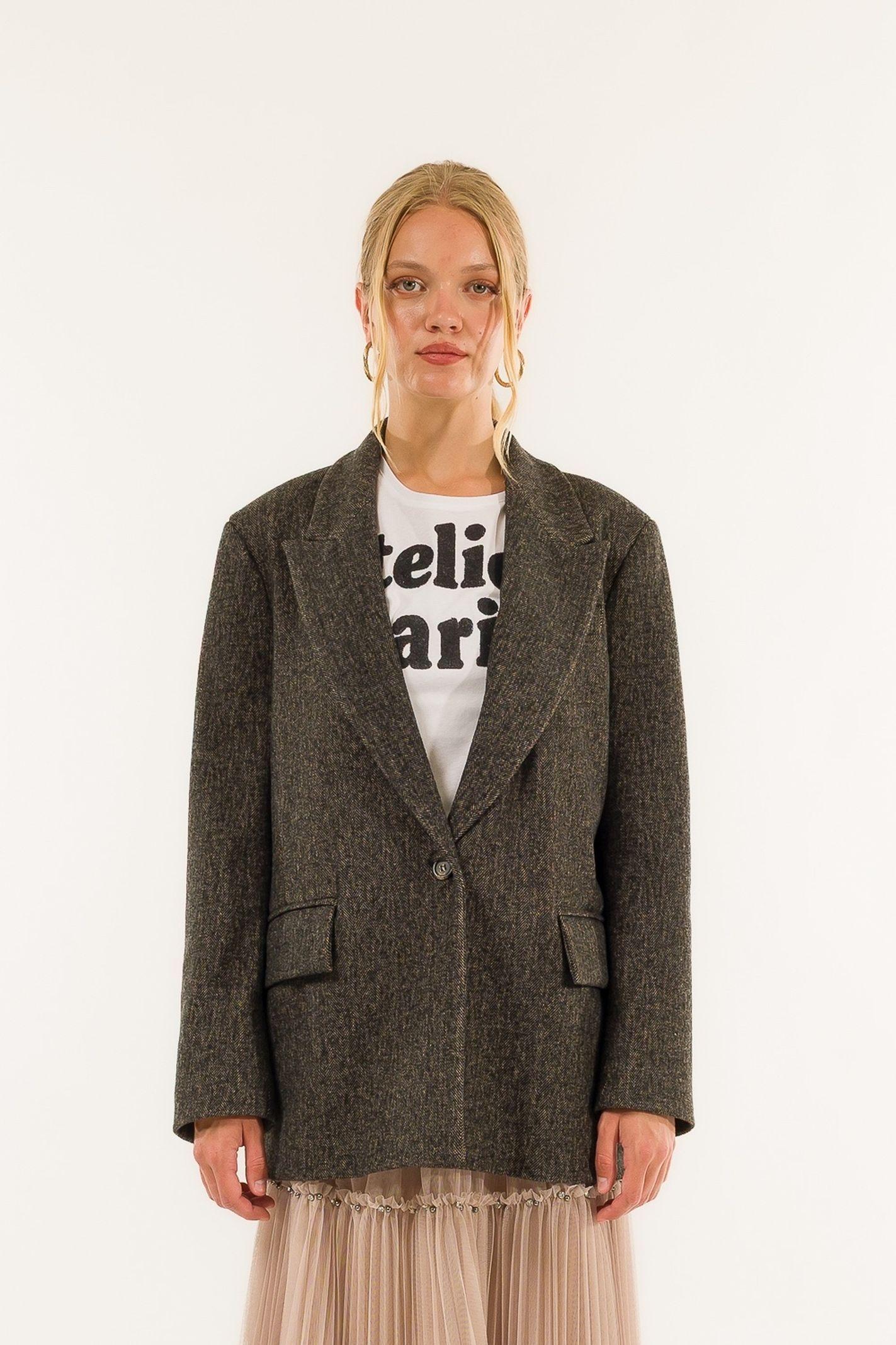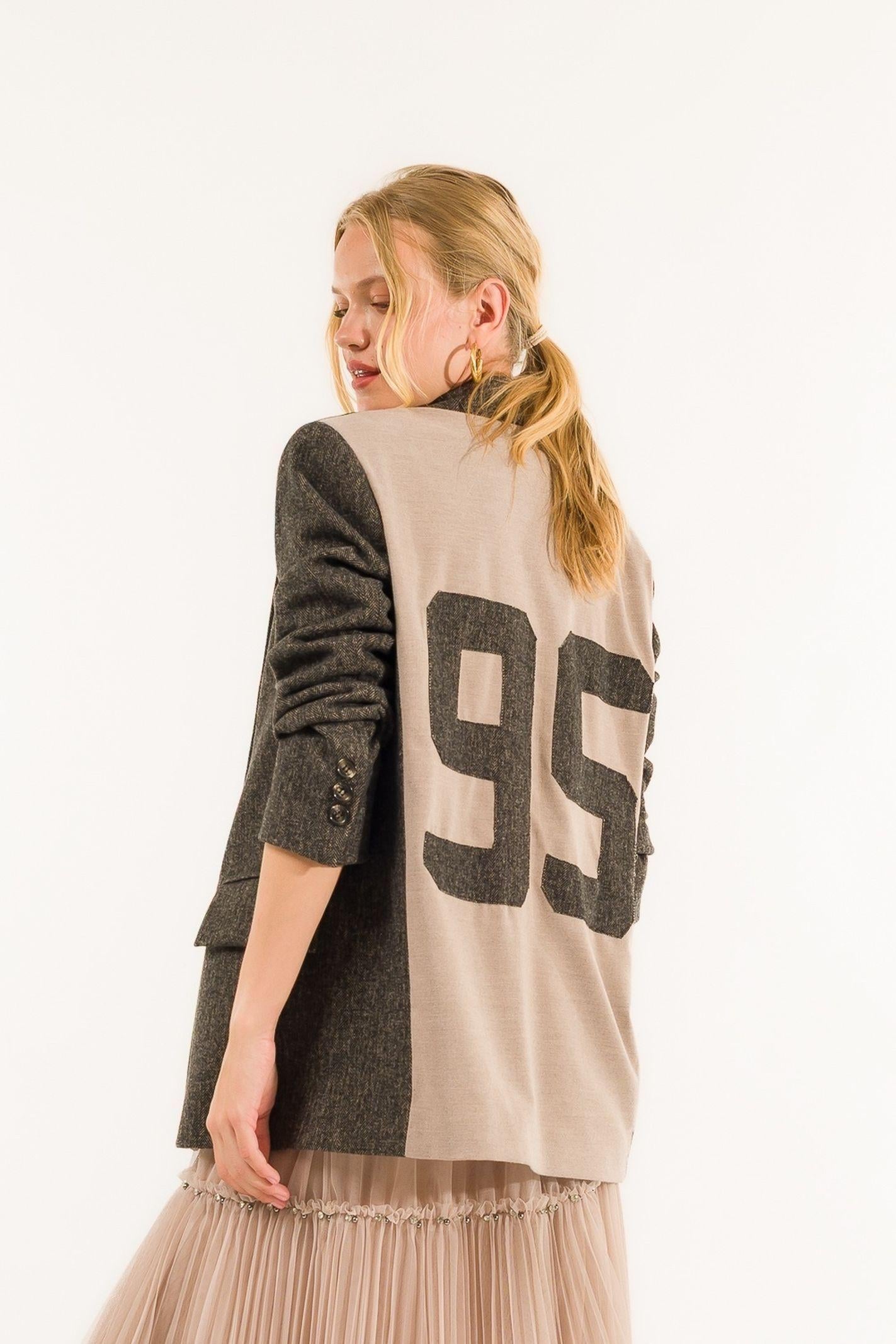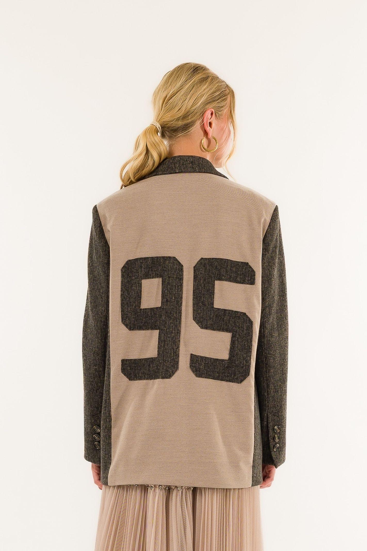 Dal carattere contemporaneo e dallo stile rilassato, questa giacca in tessuto resca e dietro beige unisce comfort e personalità in un capo dispirazione urbana. Realizzata in tessuto elasticizzato che assicura libertà di movimento e una vestibilità over di tendenza, presenta una chiusura centrale monopetto con un solo bottone e un classico collo a revers. Le tasche frontali con patta aggiungono funzionalità e struttura al design, mentre la fodera interna garantisce comfort e una piacevole sensazione di avvolgimento. Il dettaglio con la scritta 95 sul retro dona un tocco distintivo e moderno, perfetto per chi ama capi casual ma ricercati. Realizzata in tessuto resca elasticizzato con fodera interna, presenta chiusura monopetto a un bottone, tasche frontali con patta, collo revers classico, dettaglio grafico posteriore e vestibilità over.