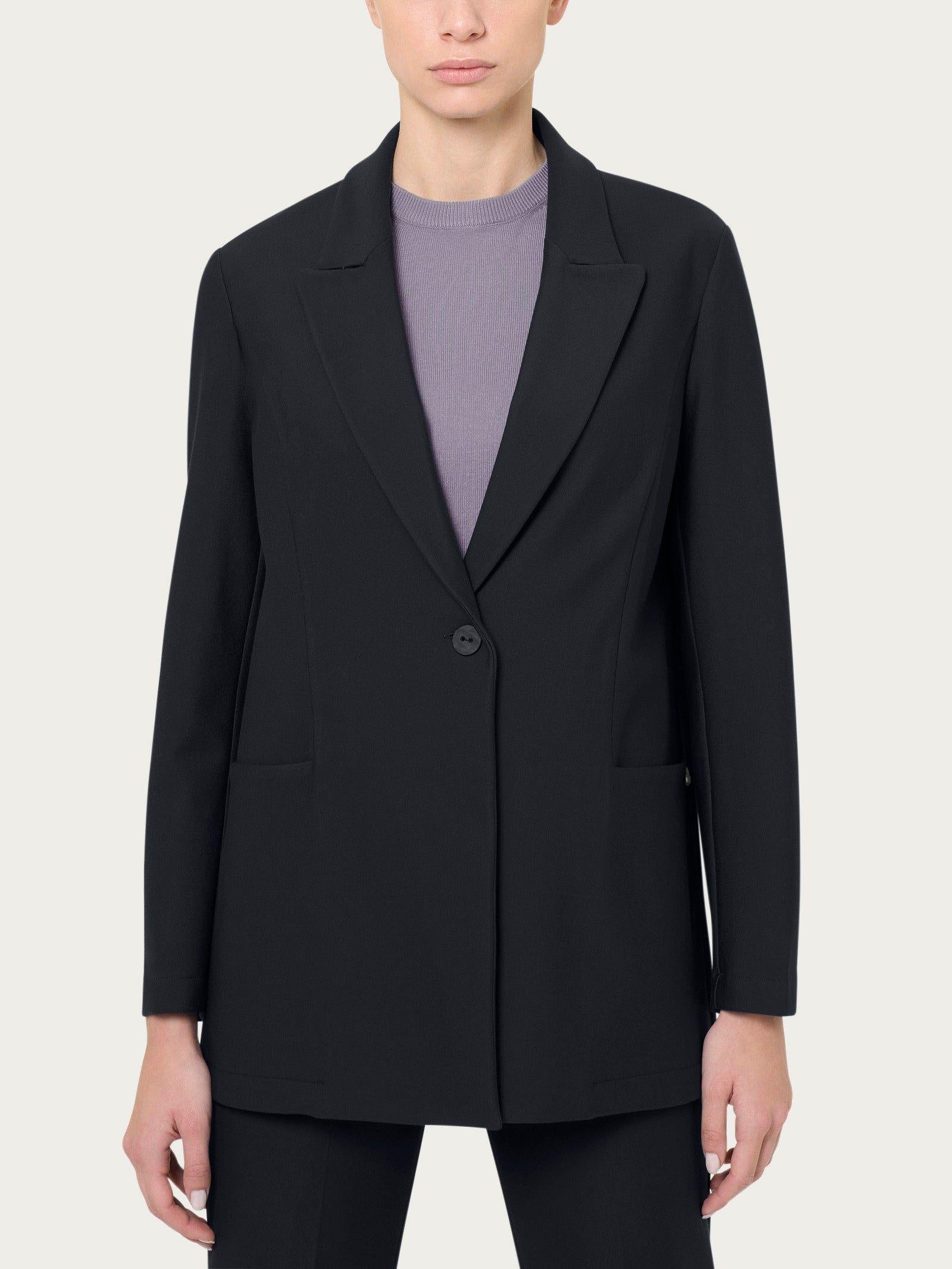 Questo modello presenta una silhouette ampia e rilassata, pensata per offrire il massimo del comfort e una piena libertà di movimento, mantenendo sempre un tocco di raffinatezza. Le cuciture frontali delineano la struttura elegantemente fondendosi con le tasche frontali, elemento distintivo anche dal punto di vista estetico, completano il capo con una nota funzionale che ne esalta la praticità. La chiusura ad un bottone ne rende pratico lindosso, facilitando la vestibilità e valorizzando la linea pulita del capo, perfetta per creare un look ordinato e sofisticato con un solo gesto. Realizzato nell'esclusivo tessuto Compact, un punto Milano incredibilmente compatto ed elasticizzato, tanto da garantire sempre una vestibilità perfetta. Un capo progettato per accompagnarti in ogni occasione, dalla freneticità della giornata lavorativa fino agli eventi serali, con un perfetto mix di eleganza e comfort.
