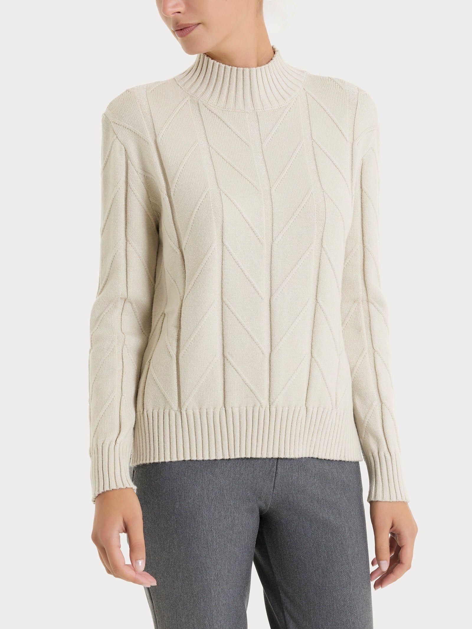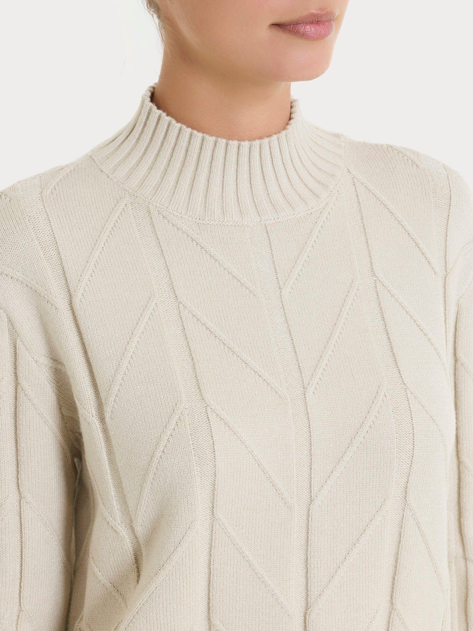 Lupetto da donna con le maniche lunghe. Caratterizzato da una lavorazione a punto spiga e una fantasia a rilievo a spina di pesce che aggiunge profondità pur mantenendo uno stile semplice ma ricercato. Il collo alto morbido, tipico del lupetto, dona calore e stile, mentre la finezza 7 lo rende leggero senza comprometterne il calore. Il fondo asimmetrico e gli spacchetti laterali donano movimento al capo facilitandone l’indosso. Con la sua vestibilità boxy offre una silhouette moderna e informale, mentre le maniche sono rifinite da pratici polsini, in armonia con la bordatura del collo e del fondo del capo per maggiore comfort. Realizzato nell'esclusivo filato Super Soft, un mix super morbido di fibre che unisce morbidezza, calore e praticità. Soffice anche sulle pelli più sensibili. Questo capo si abbina facilmente ai Ragno Pants, offrendo combinazioni di stile curate e attuali adatti a tutti i momenti della giornata.