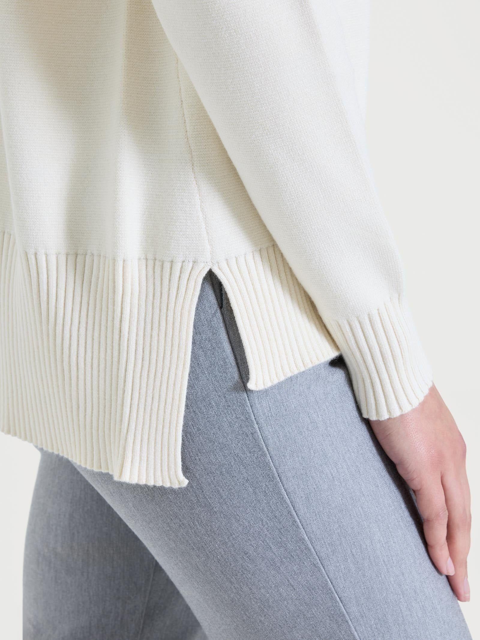 Maglia con scollo a V da donna in viscosa, tessuto in finezza 12, caldo, morbido e pratico. Questo modello presenta comode aperture laterali e pratici polsini e bordature in costina 3x3 che donano al capo un’eleganza sobria e curata. Il fondo asimmetrico, con spacchetti laterali e una parte posteriore leggermente più lunga, aggiunge movimento alla linea e valorizza la silhouette con discrezione. La forma boxy si distingue per la sua morbida struttura, pensata per offrire una sensazione di benessere costante. Realizzato nell'esclusivo filato Super Soft, un mix super morbido di fibre che unisce morbidezza, calore e praticità. Soffice anche sulle pelli più sensibili. Dall’ufficio a un alla giornata fuori porta, è il capo giusto per affrontare la giornata con disinvoltura.