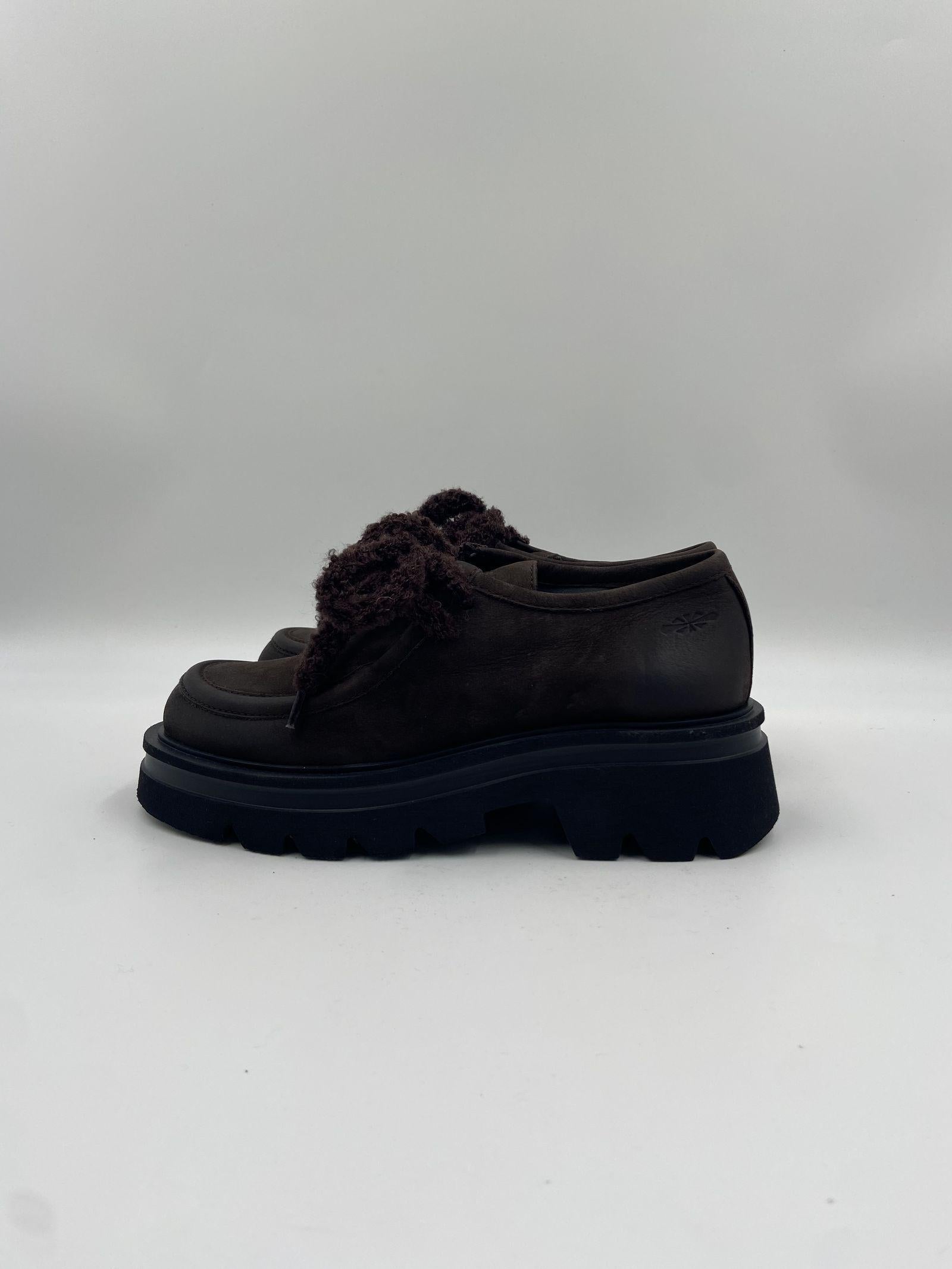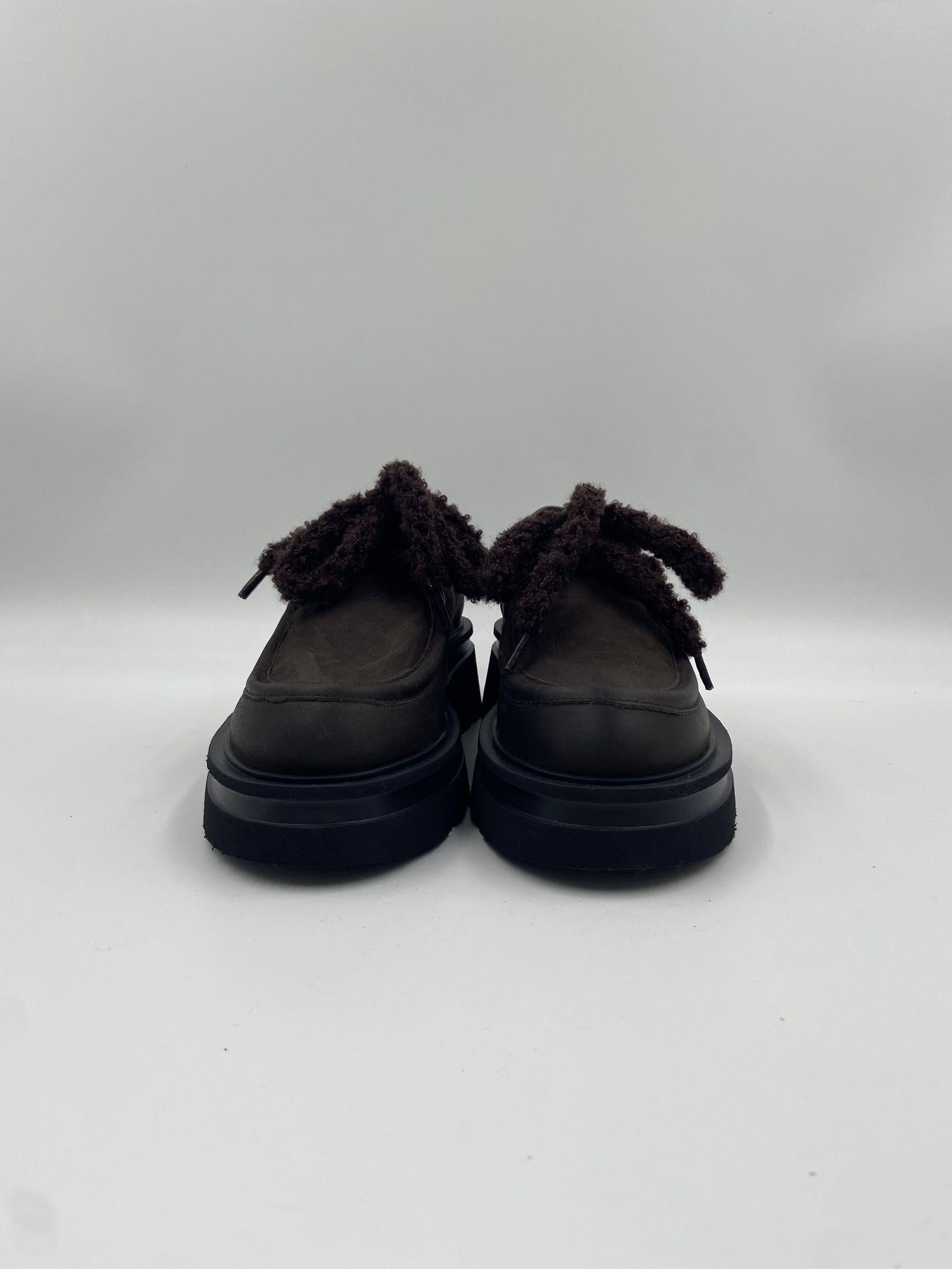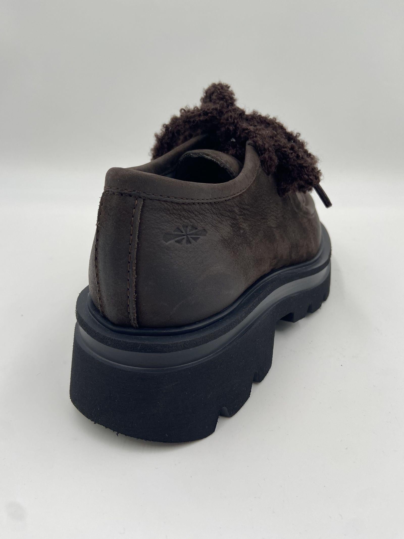 Realizzata in pregiata pelle marrone, la slip-on Ingy si distingue per le sue linee pulite e sobrie, perfette per chi ama un look essenziale e sofisticato. La silhouette alla caviglia è valorizzata da un elastico laterale che facilita la calzata, garantendo praticità senza rinunciare allo stile. La suola Noriko in gomma, con il suo caratteristico design a carro armato, dona un tocco grintoso e moderno, mentre laltezza del tacco da 50 mm, il platform da 30 mm e la battuta da 15 mm assicurano comfort e stabilità per tutto il giorno. La punta rotonda e linterno in pelle completano il design con eleganza e funzionalità. Completamente made in Italy, questo mocassino rappresenta il perfetto equilibrio tra raffinatezza artigianale e praticità quotidiana, ideale per accompagnarti con discrezione e classe in ogni occasione.
