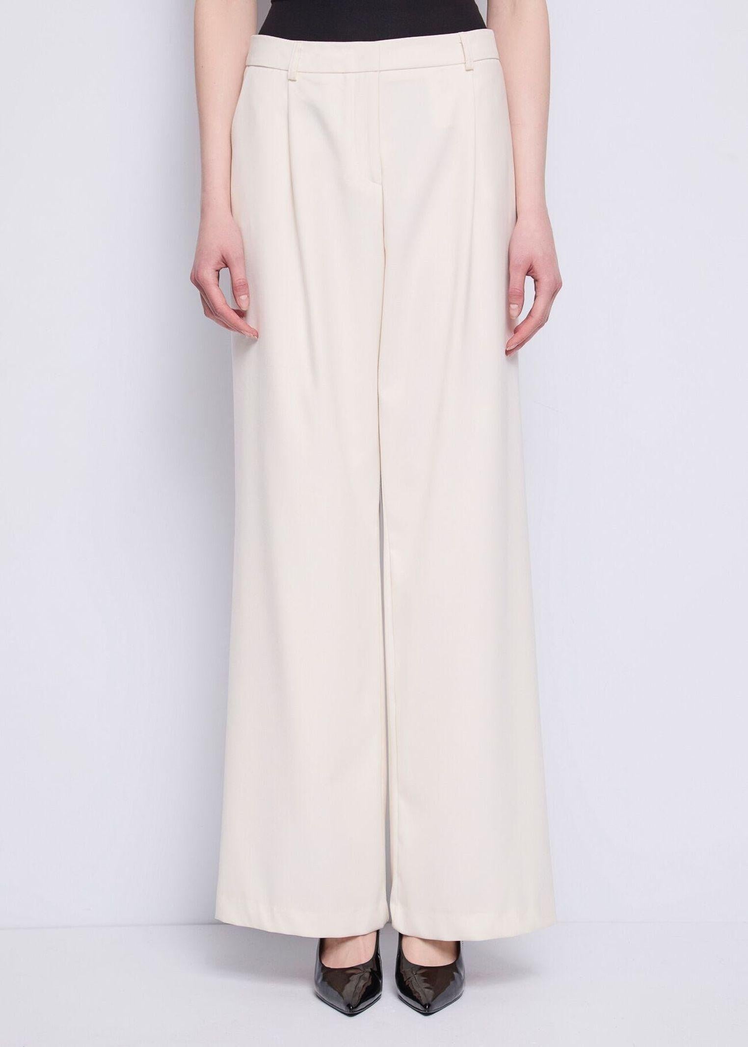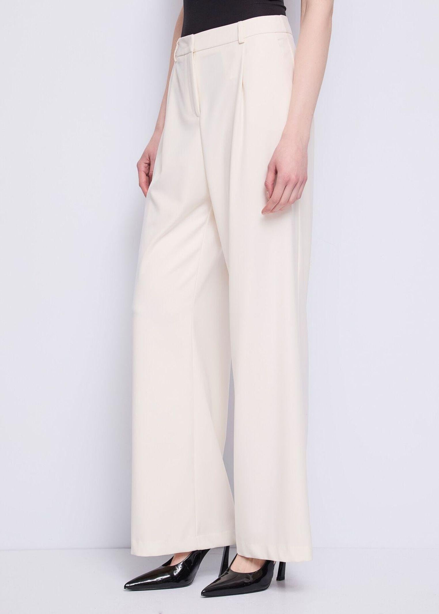 Pantalone in misto viscosa elasticizzata, con vita alta e pinces che donano struttura e carattere al capo, chiusura con gancetto metallico e lampo, passanti in vita.La linea morbida e il taglio fluido accompagnano i movimenti con naturalezza, creando una silhouette rilassata ma ricercata. Un modello essenziale e contemporaneo, perfetto da abbinare a blazer destrutturati o camicie oversize per uno stile pulito e moderno.