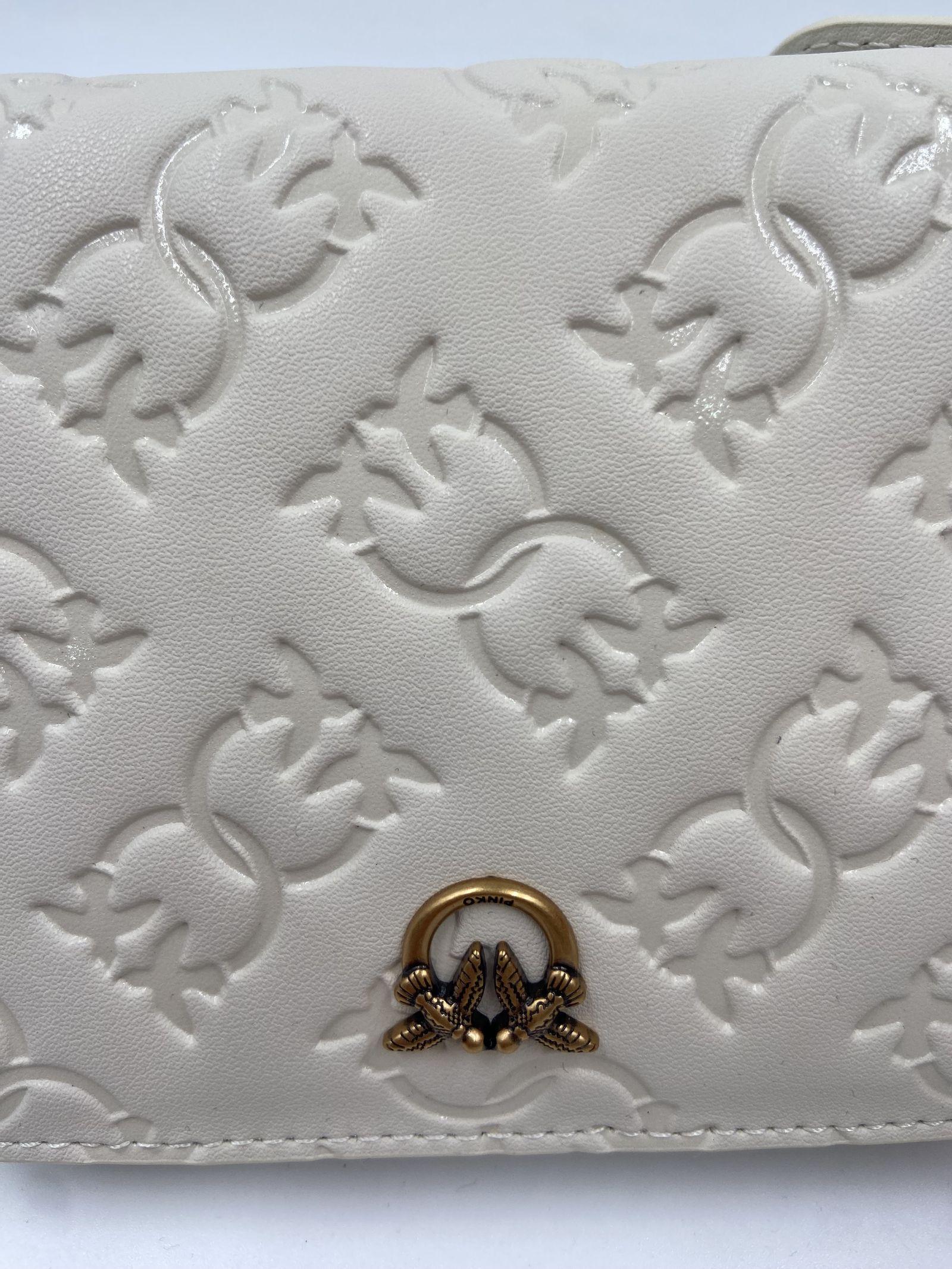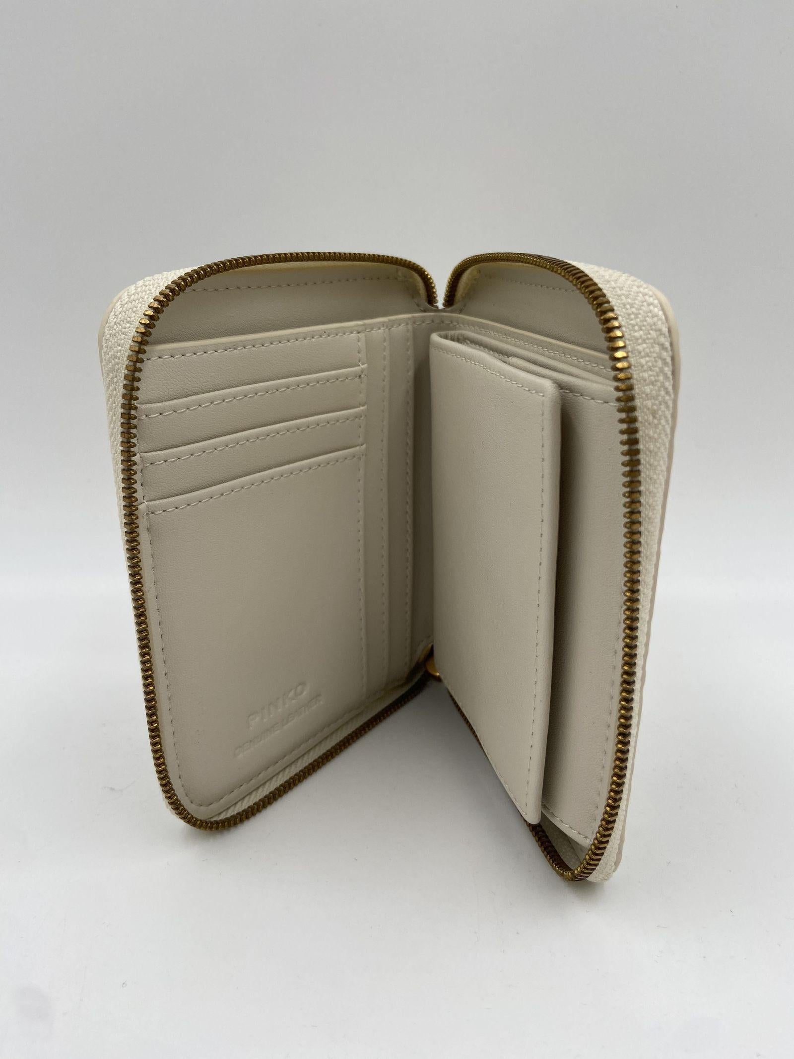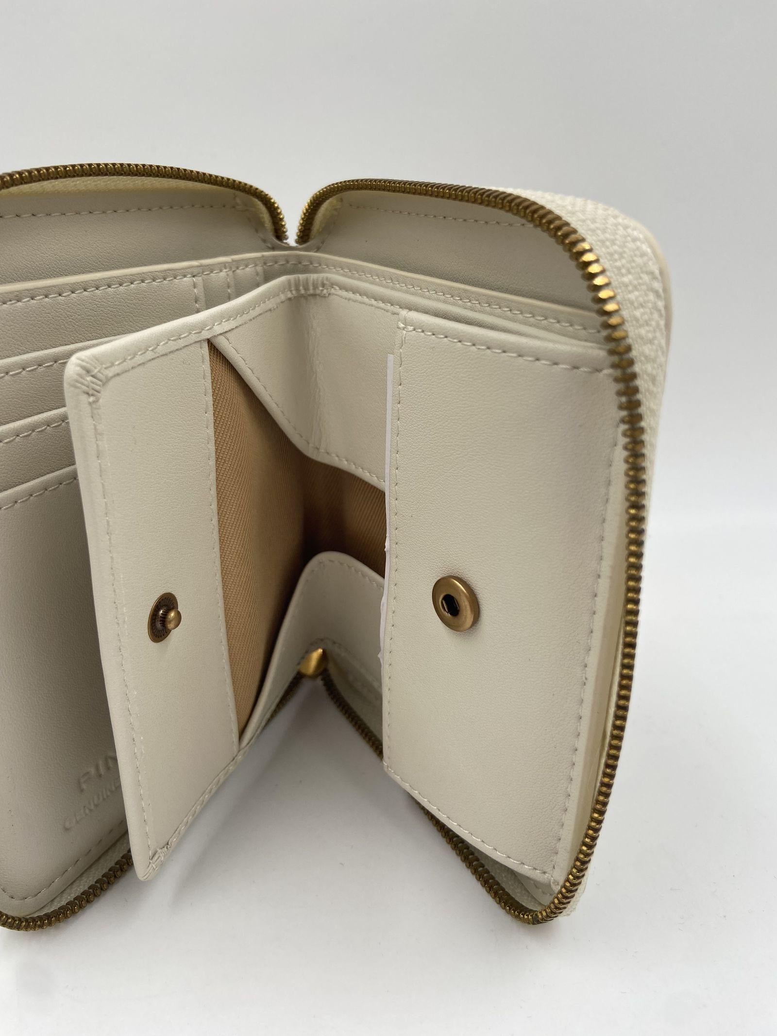 Portafoglio di piccole dimensioni in morbida pelle mano seta con fantasia Love Birds Monogram realizzata con tecnica imprimè, che crea un particolare effetto tipo trapuntato in superficie. Il portafoglio di forma quadrata è foderato in polycotton e include spazi per documenti e carte di credito oltre a uno scomparto per monete, ed è chiuso con zip su tre lati. Questo portafoglio femminile è un'icona fra gli accessori della nuova collezione, ed è perfetto da aggiungere alla tua borsa Love Bag.Dimensioni: H 10cm x L 12cm x P 2cm