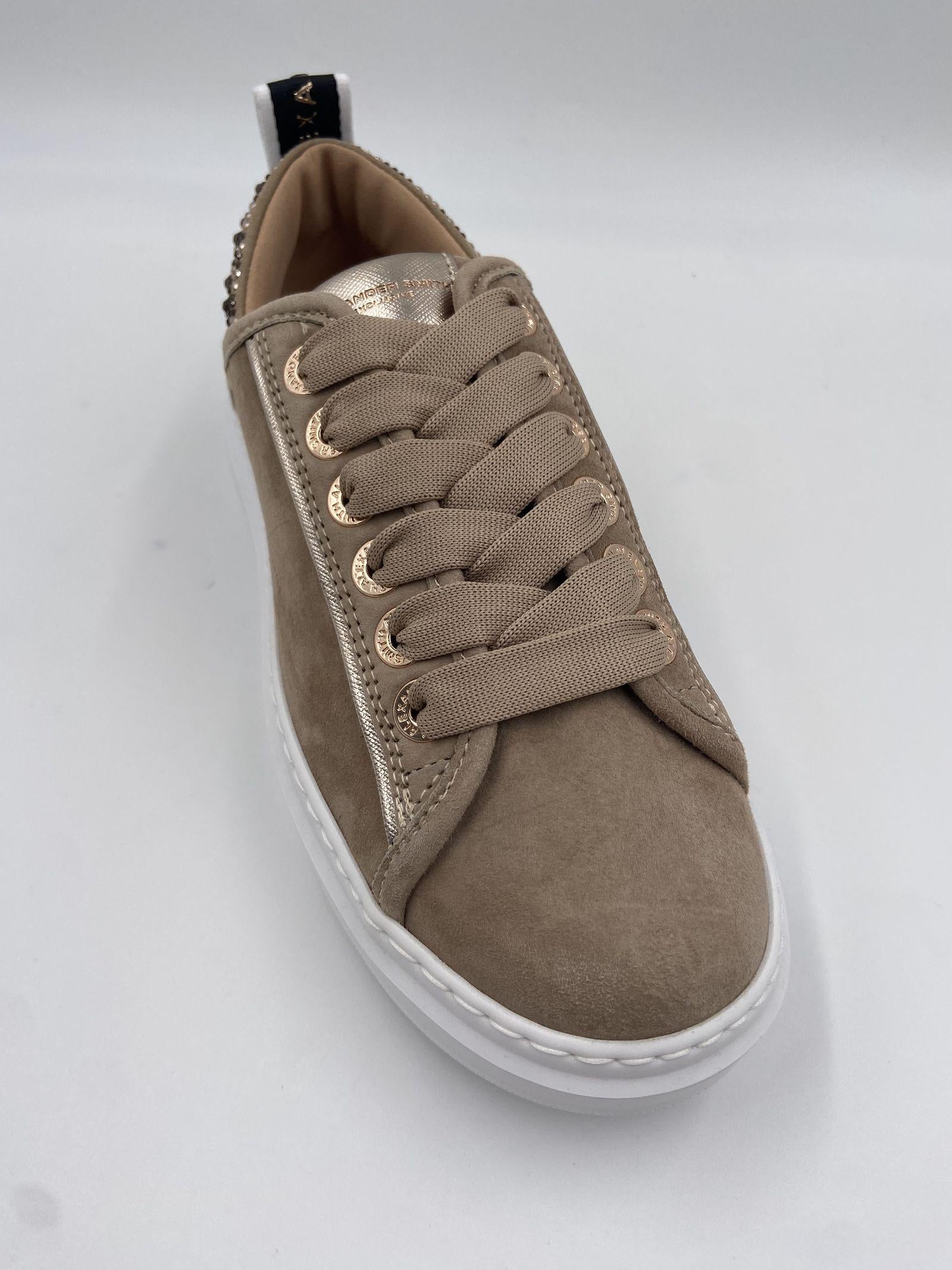 Le nuove sneakers Wembley sono realizzate in morbida pelle scamosciata offrendo un comfort straordinario, dal colore marrone chiaro in versione full strass, con occhielli oro rosa e logo sul retro e a lato, e una suola in gomma alta 40 mm. All'interno con soletta removibile alta 10 mm.