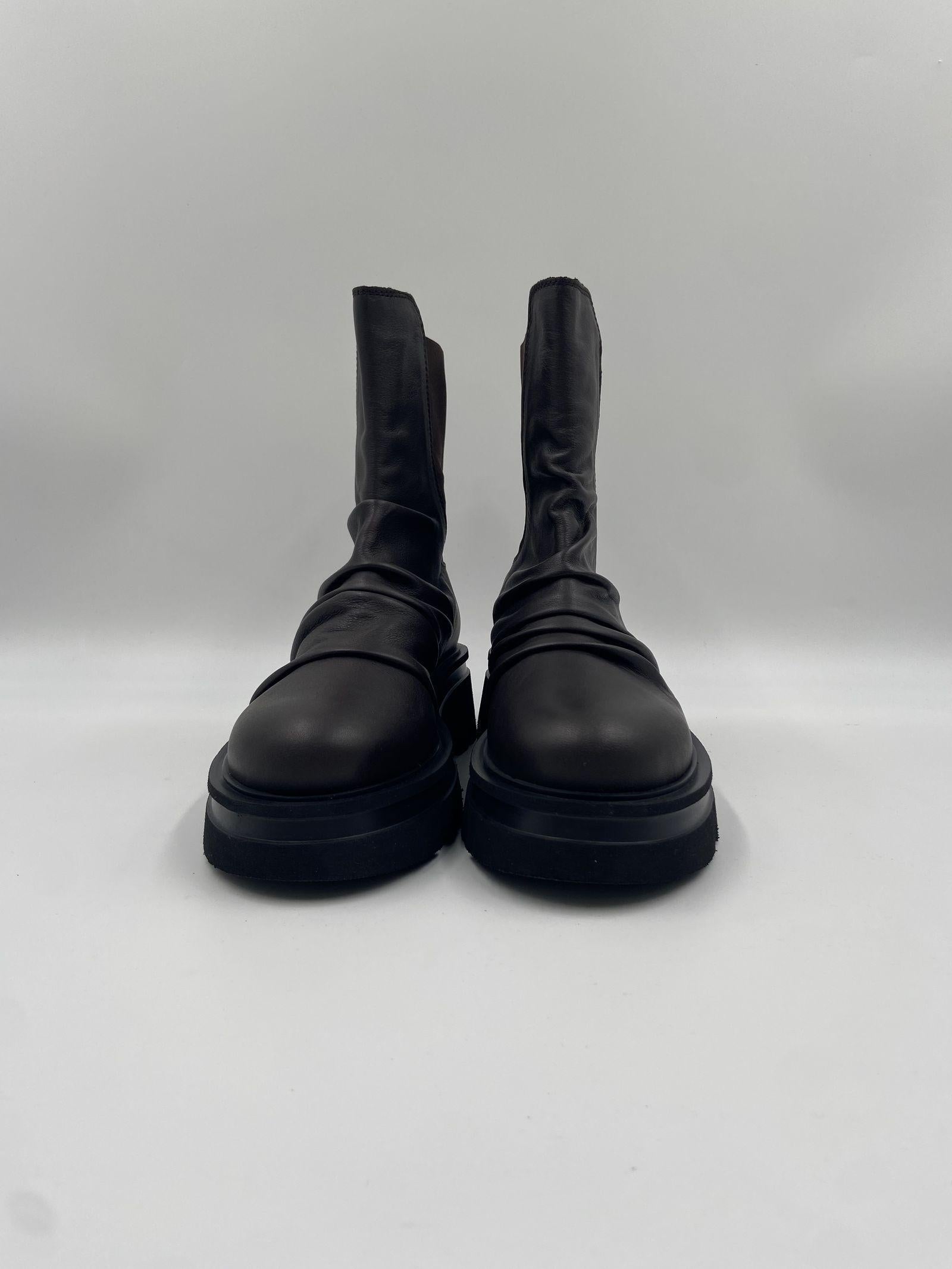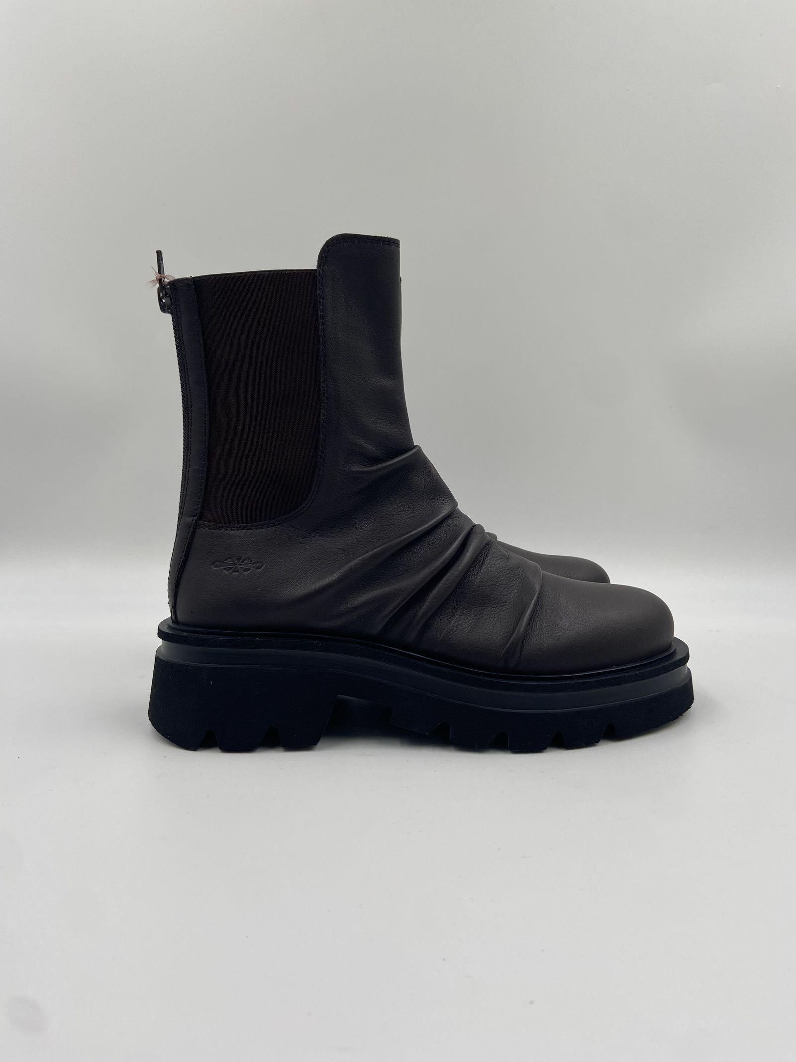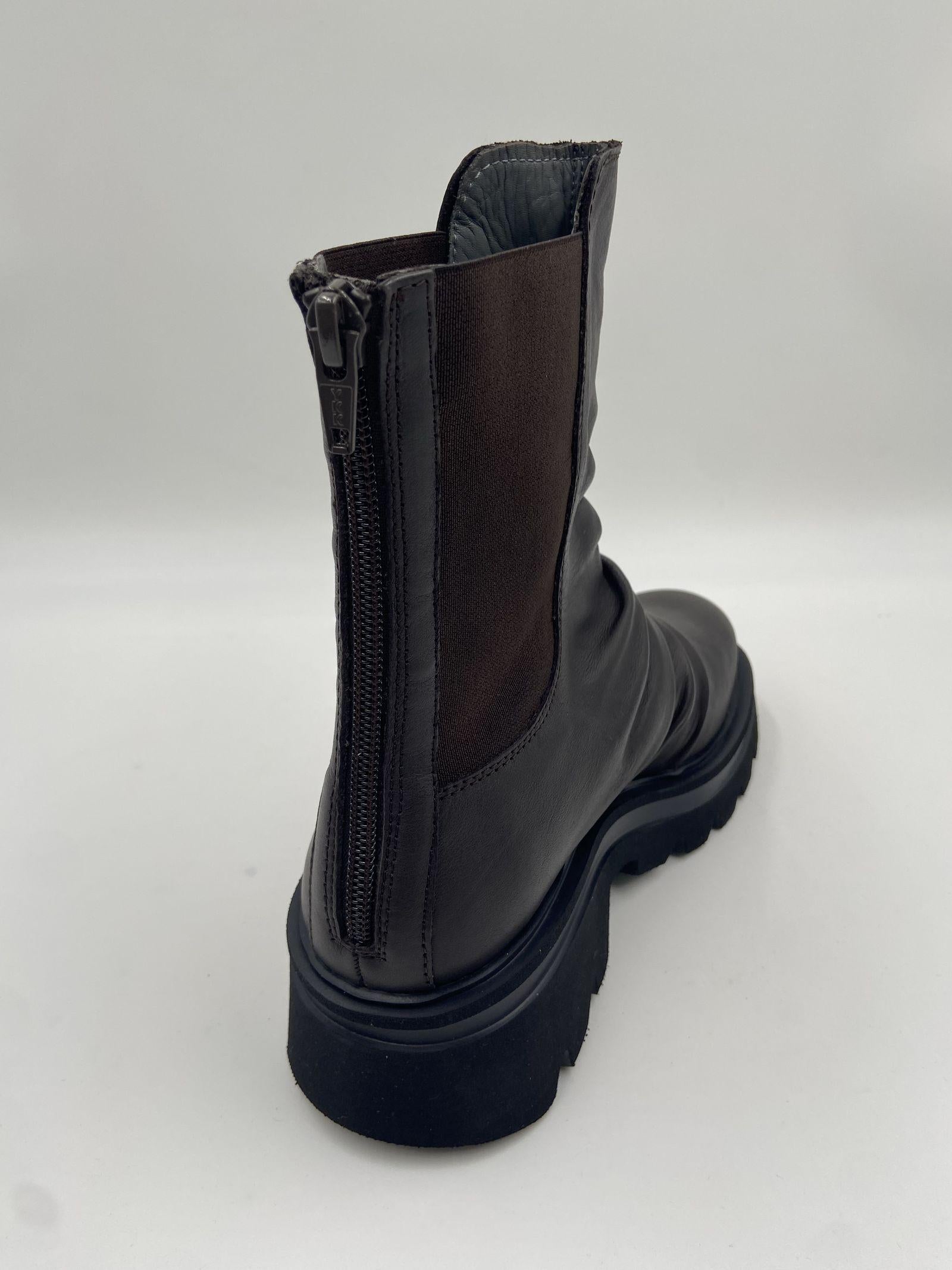 Scopri questi stivaletti in pelle, un perfetto equilibrio tra comfort e stile minimale. Realizzati in pregiata pelle marrone scura, questi tronchetti si distinguono per la loro linea pulita ed essenziale, arricchita da una pratica zip posteriore che garantisce una calzata semplice e sicura. La suola Noriko con tacco da 50 mm, platform da 30 mm e battuta da 15 mm offre un perfetto bilanciamento tra eleganza e comodità, mentre la punta rotonda conferisce un tocco armonioso al design. Linterno in pelle assicura morbidezza e una vestibilità confortevole, mentre la suola in gomma dentellata garantisce stabilità e aderenza su ogni superficie. Gli ankle boots Toki rappresentano il must-have della stagione, ideali per valorizzare ogni outfit con un tocco di eleganza discreta e praticità.