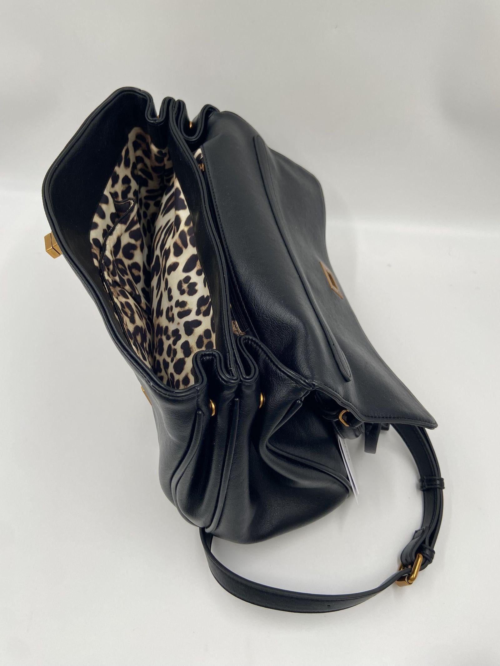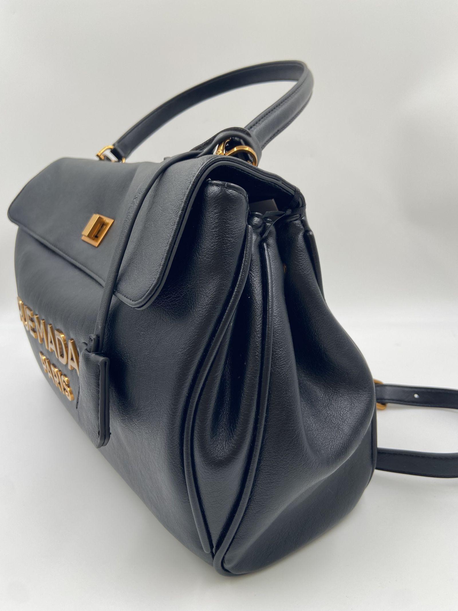 Borsa realizzata in similpelle, caratterizzata da interno foderato, un manico singolo a spalla, una tracolla regolabile e removibile, chiusura con patta e gancio, una doppia tasca interna e uno scomparto interno, logo davanti in metallo oro, fondo con piedini.Si distingue per il logo in metallo oro davanti.Dimensioni: H 26cm x L 35cm x P 10cm