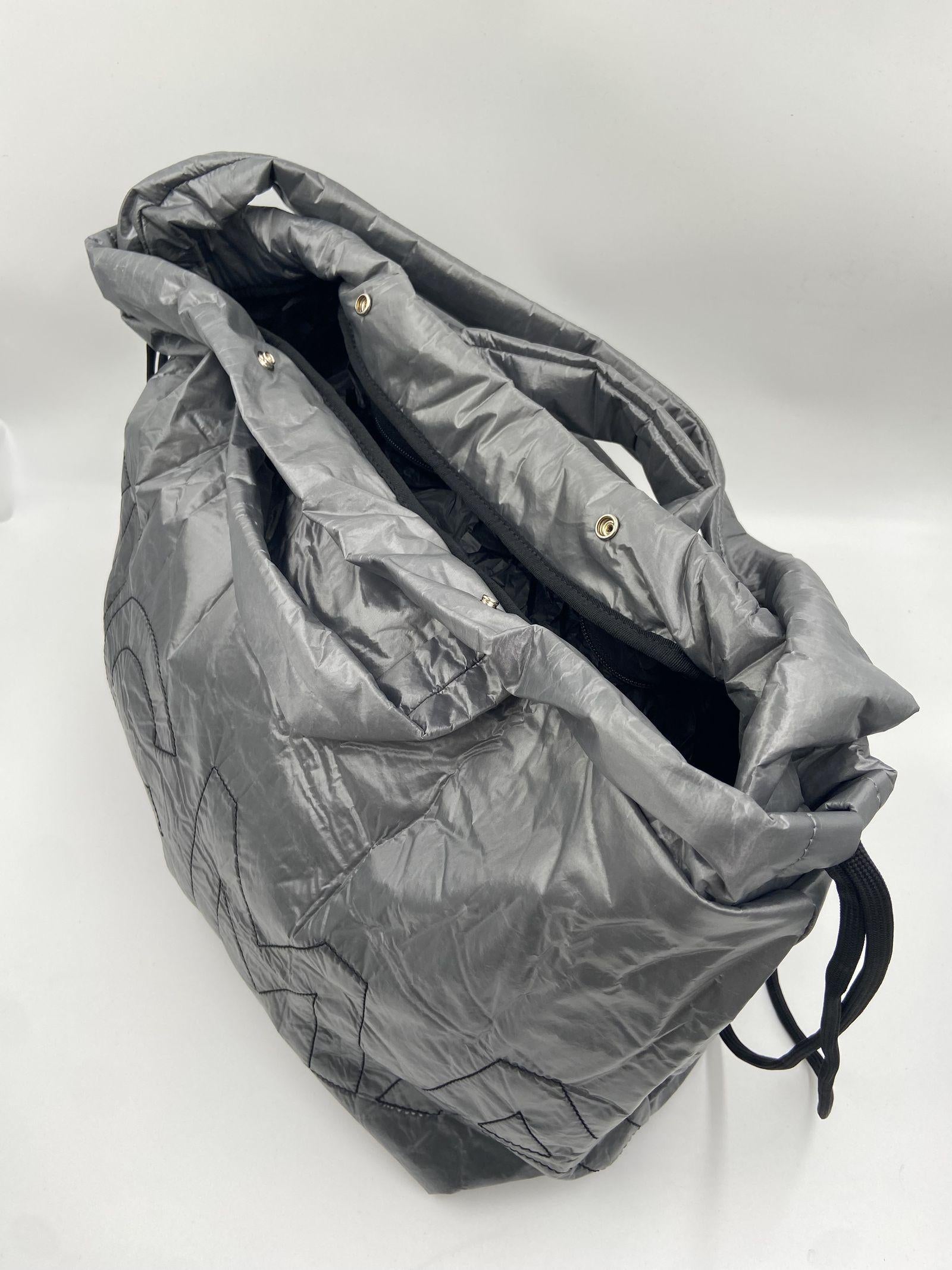 Borsa a zaino in materiale naylon, con ricamo logo Vic Matie tono su tono. Si può utilizzare anche a zaino con apposite tracolline, richiudibile nella tasca interna, utile da viaggio. Dimensioni : H 45 cm x L 40 cm x P 22 cm