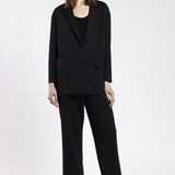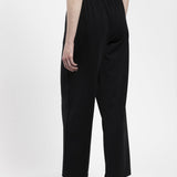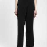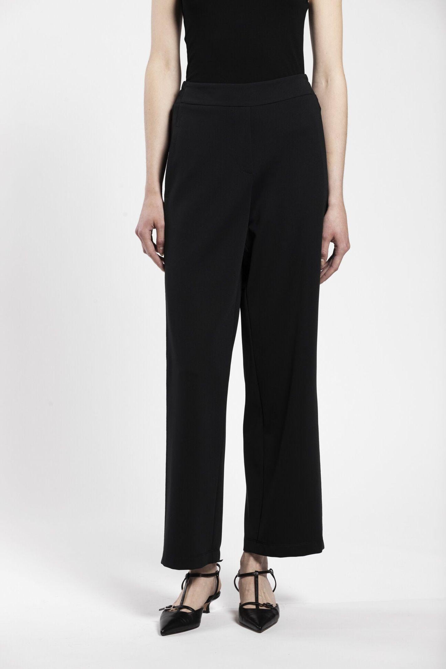 Pantalone con impunture realizzato in tessuto jersey tecnico e vita regolare dietro elasticizzata, tasche laterali alla francese e gamba ampia.