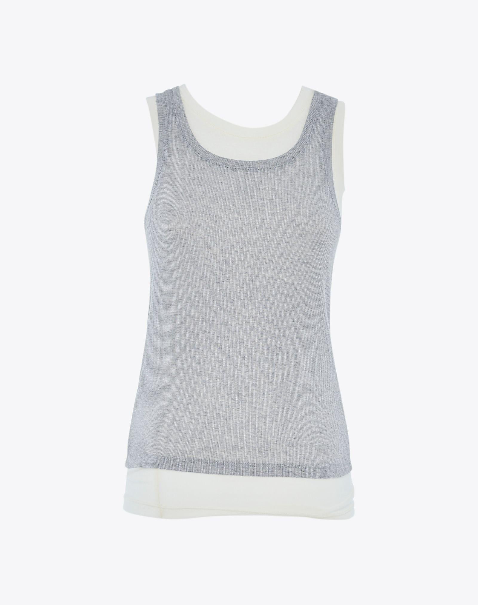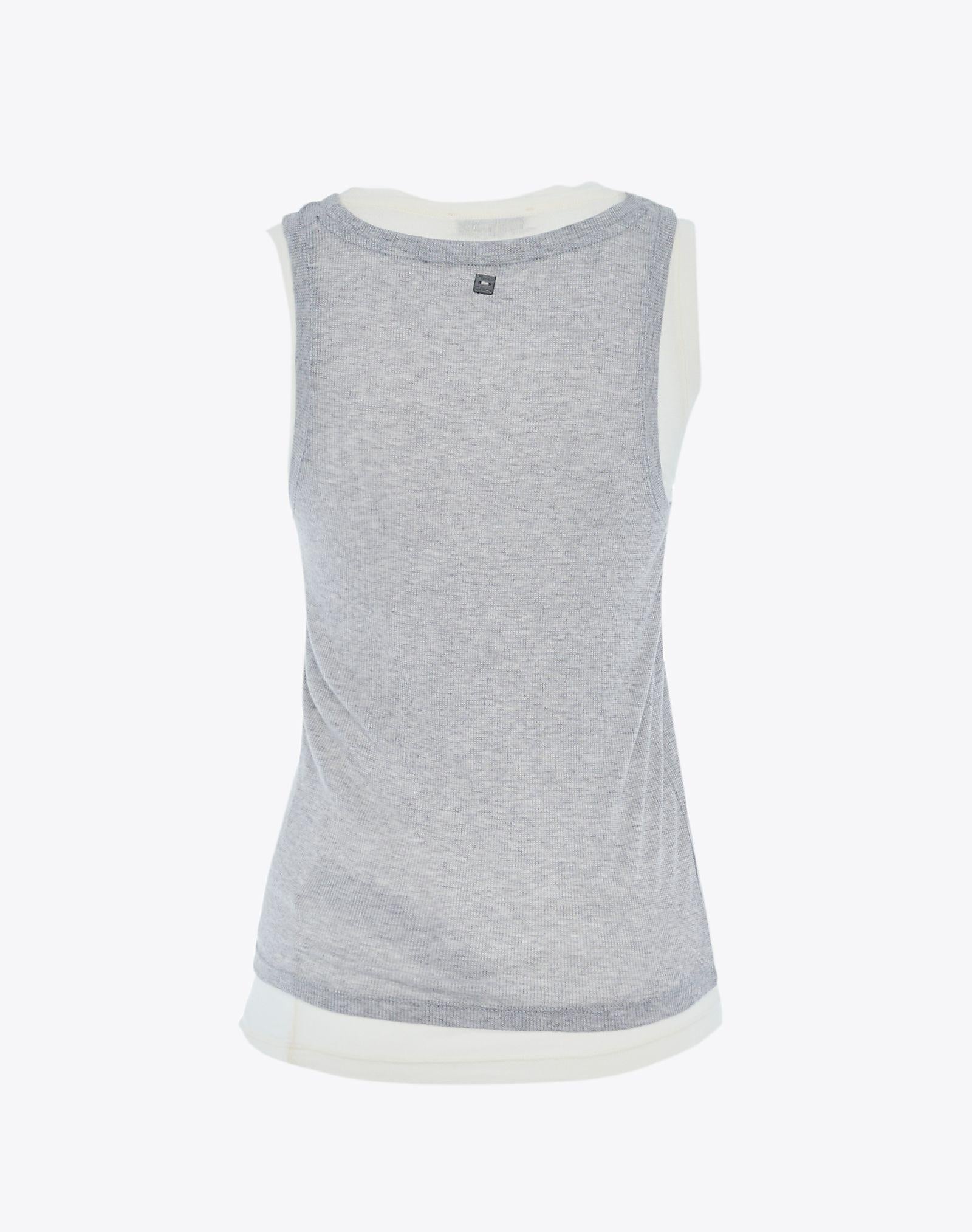 Canotta realizzata in costina di viscosa con scollo olimpico posteriore, e rifiniture a costine strette, ideale indossata ad un paio di jeans per un ottenere un look casual.