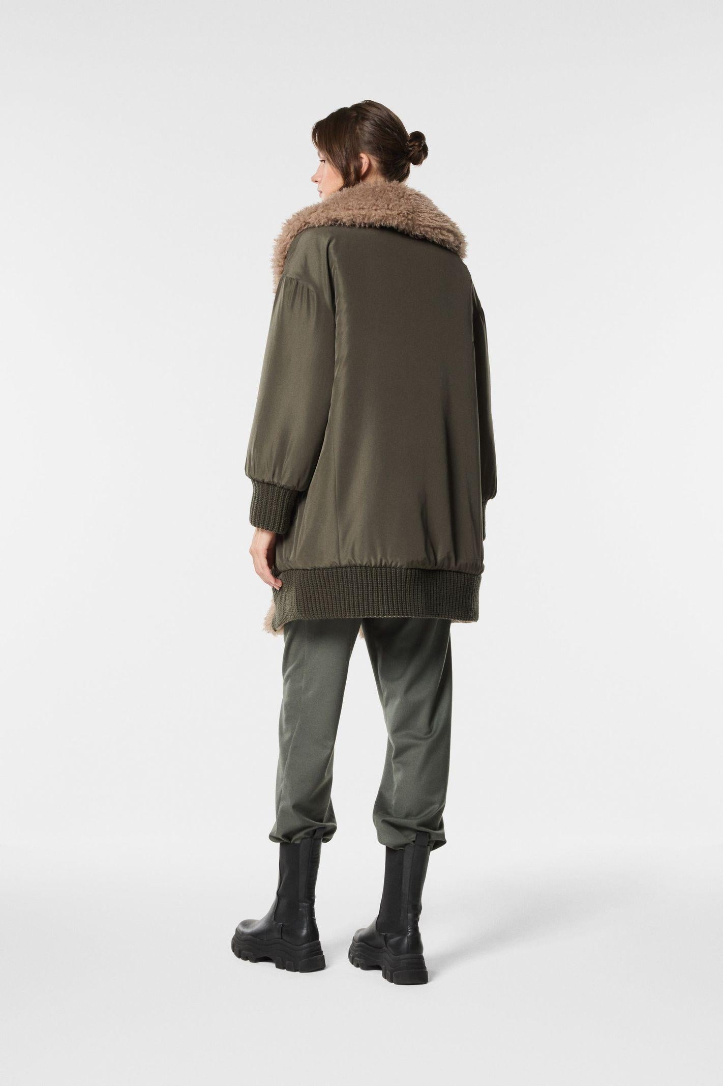 Un capo versatile e contemporaneo, perfetto per look casual-chic. Da un lato nylon tecnico per un effetto moderno e leggero, dall’altro ecopelliccia curly per calore e stile. Reversibile e pratico, trasforma ogni outfit con un tocco sofisticato e confortevole, ideale da abbinare a pantaloni o gonne.