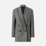 Giacca doppiopetto dalla silhouette dritta, realizzata in flanella di jersey di misto lana tinto in filo, un tessuto perfetto per combinare morbidezza, elasticità e comfort. Il modello d'ispirazione classica presenta collo con revers, spalle strutturate, due tasche con pattina ai lati e uno spacco sul retro, ed è foderato per assicurare una maggiore facilità di indosso. Chi ha detto che i capi formali non possano essere anche confortevoli? I tuoi look per l'ufficio non saranno mai più gli stessi.