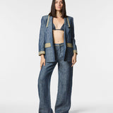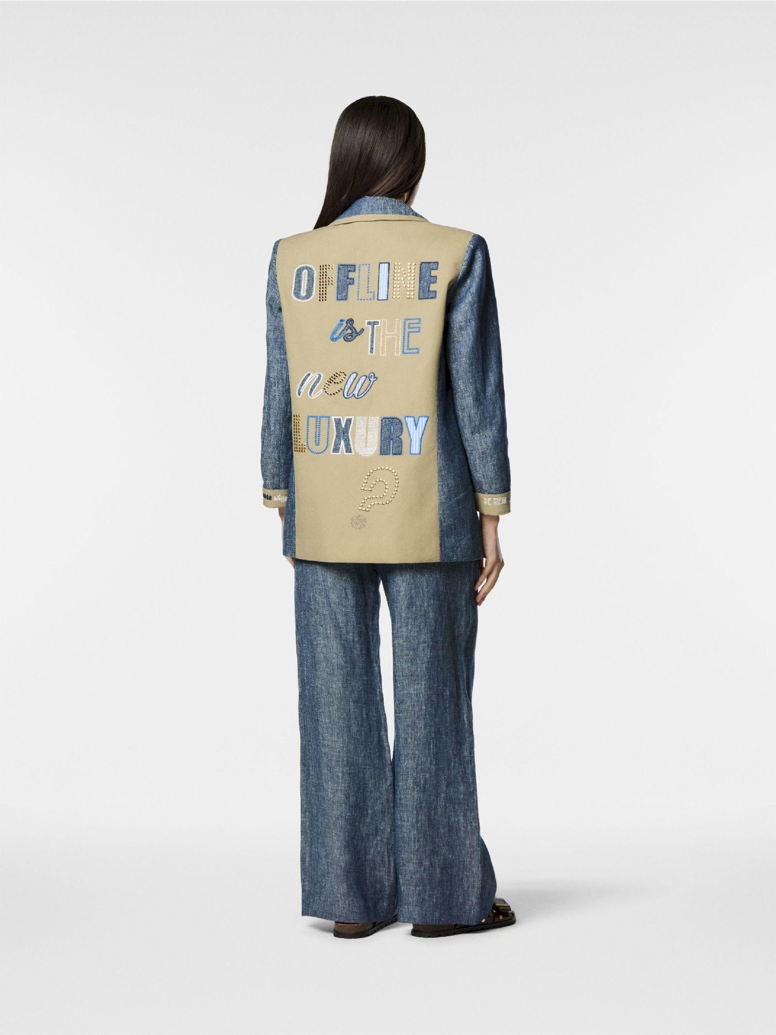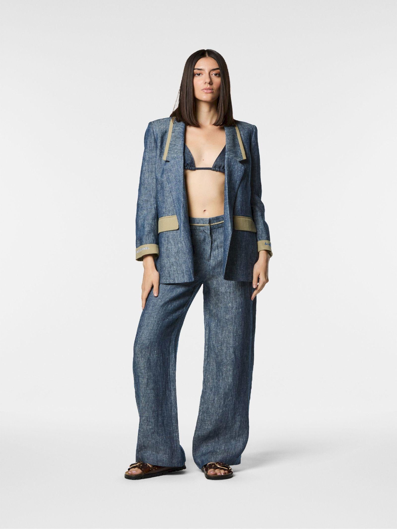 Tessuto principale: 100% Lino Fodera: 55% Poliestere 45% Viscosa Cura e lavaggio: Usare il lavaggio a secco professionale, si consiglia di stirare a rovescio non superando i 110°