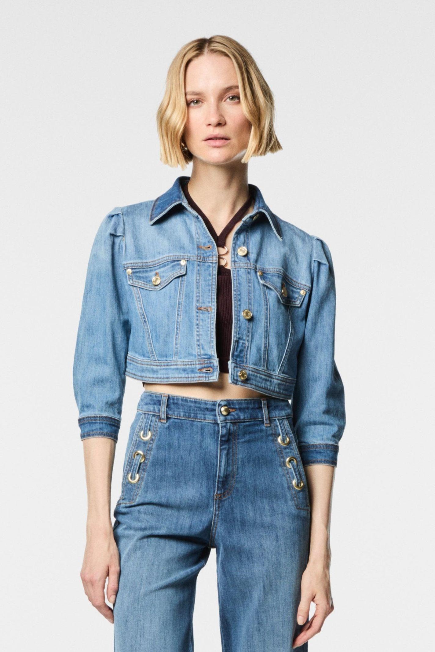 Giubbotto cropped in denim, casual e alla moda, dallo stile fresco e versatile. La lunghezza corta e il tessuto elasticizzato garantisce una vestibilità perfetta e grande libertà di movimento. Ideale per completare look quotidiani con un tocco moderno e dinamico.