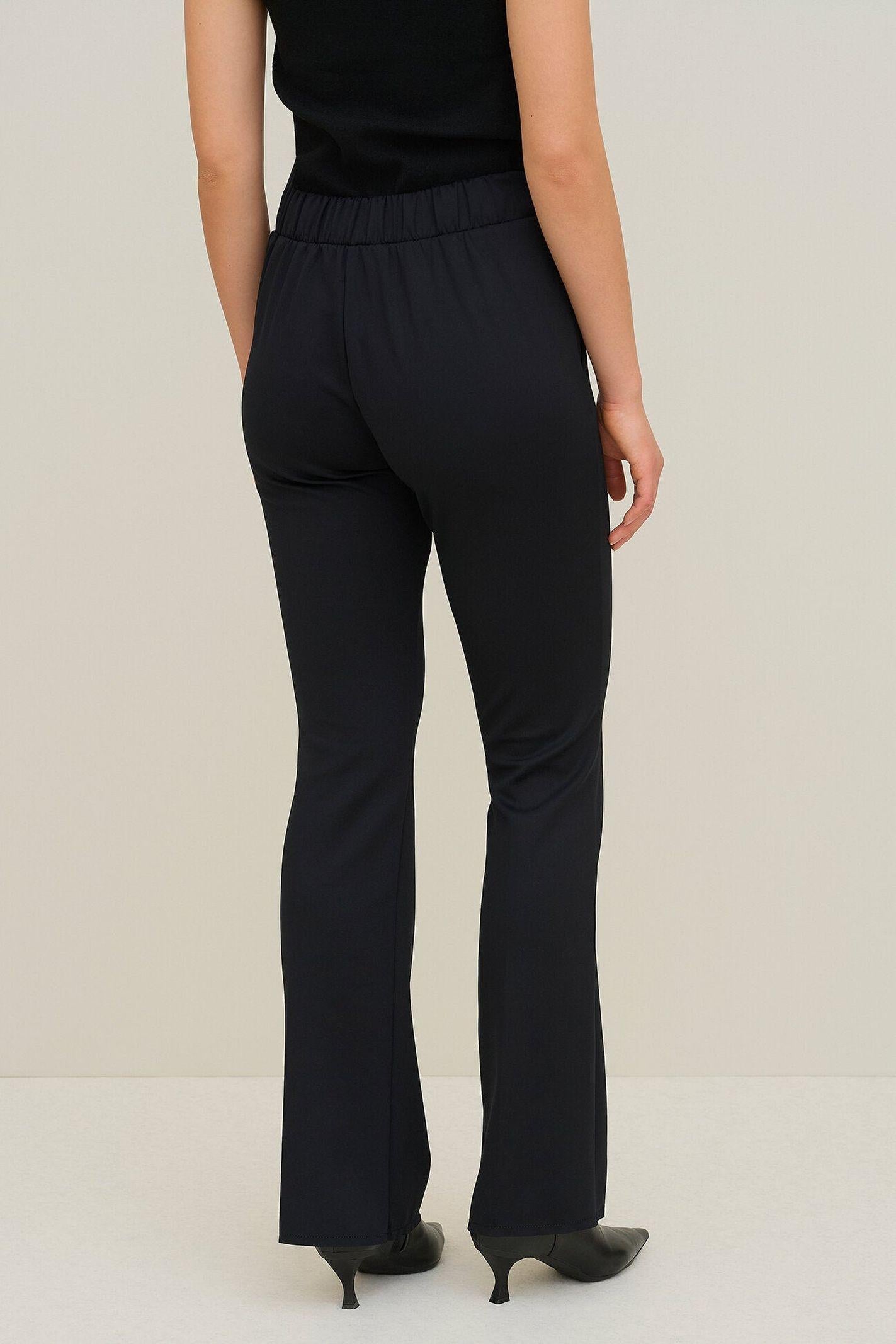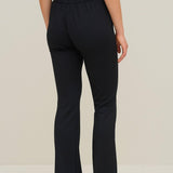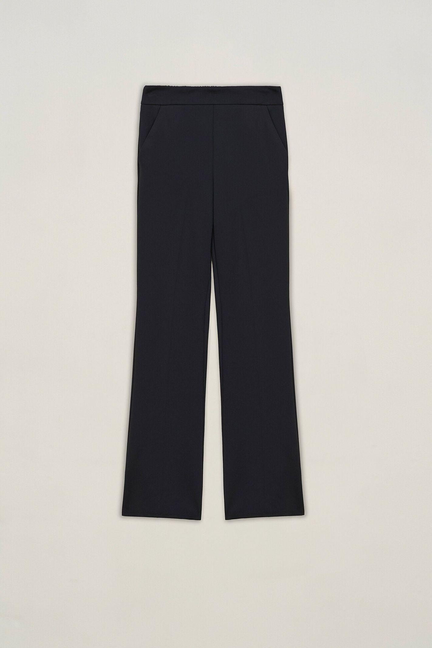 Pantalone bootcut in tessuto jersey tecnico elasticizzato, vita regolare elasticizzata sul retro, tasche alla francese. Vestibilità dalla gamba aderente e linea svasata in fondo.