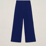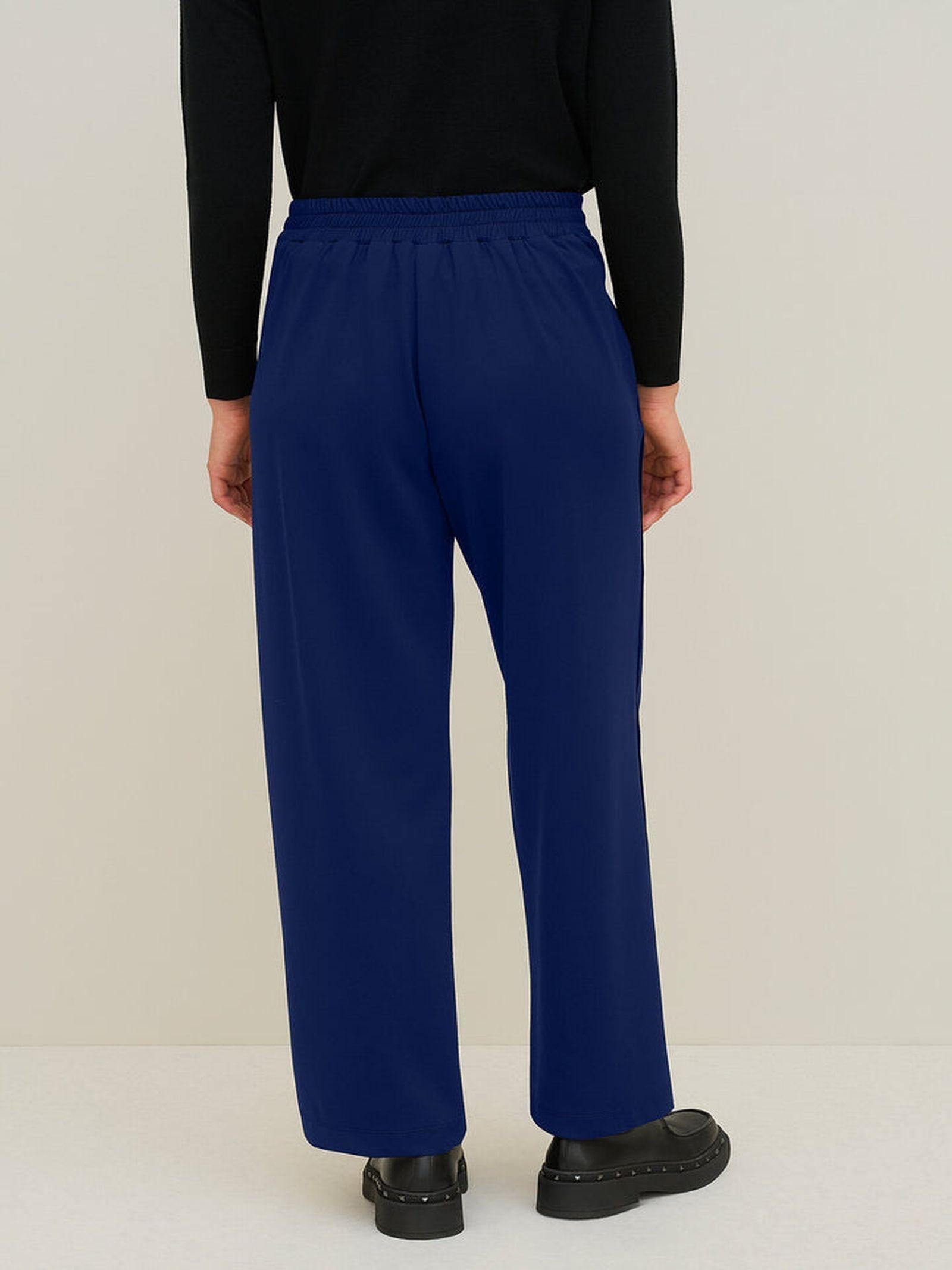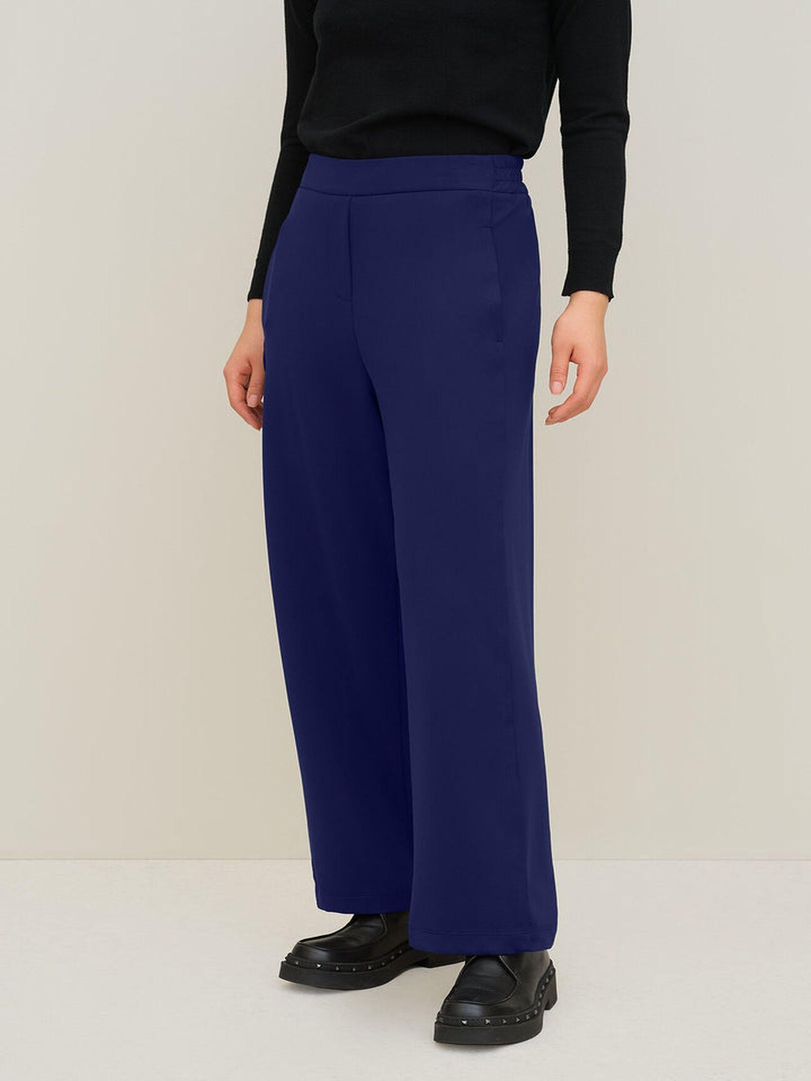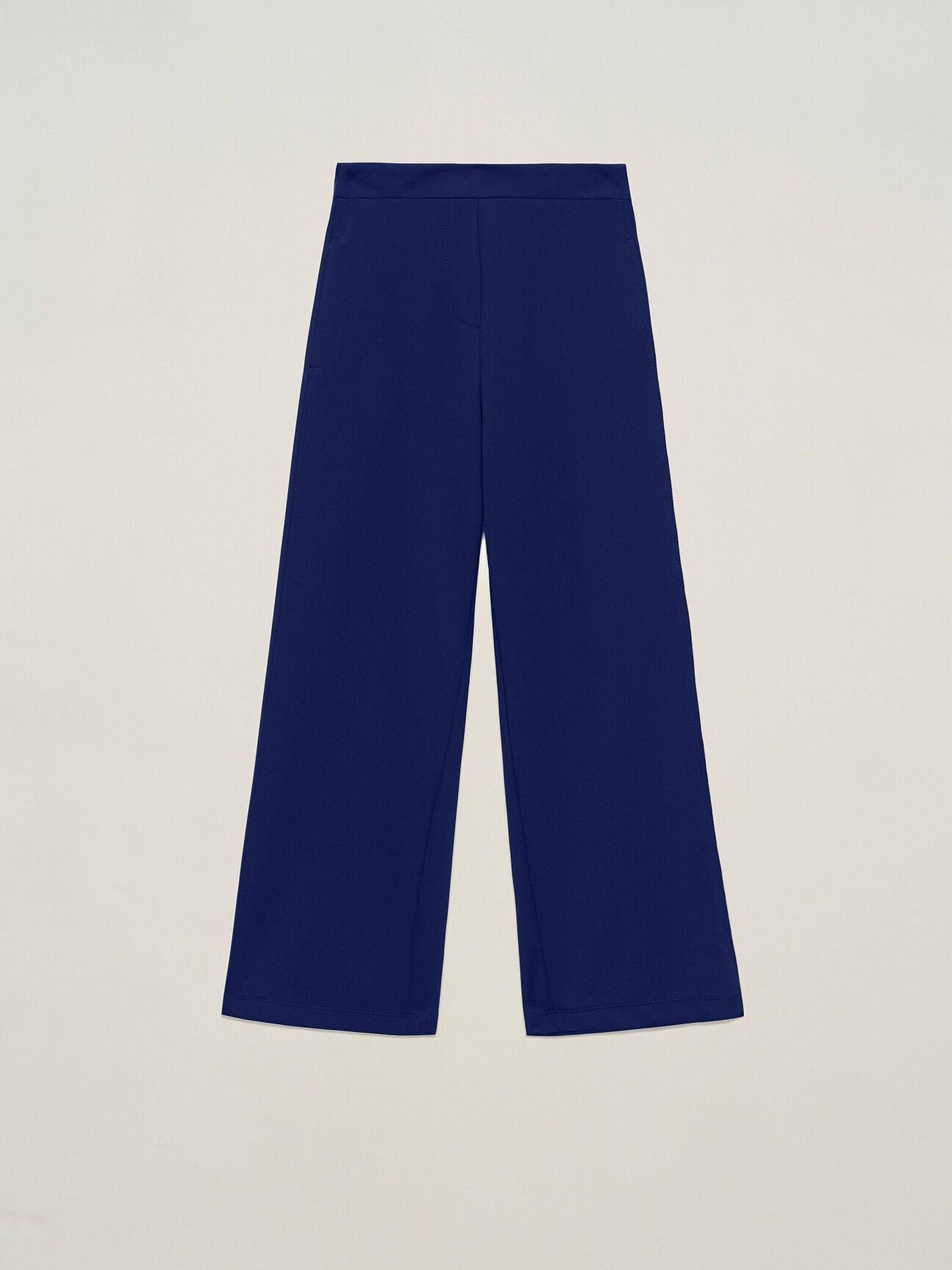Pantalone con impunture realizzato in tessuto jersey tecnico e vita regolare dietro elasticizzata, tasche laterali alla francese e gamba ampia.