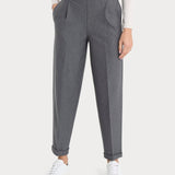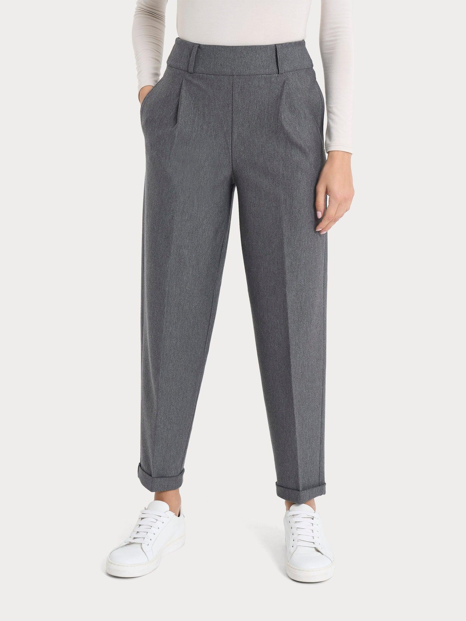 Pantalone carrot con vestibilità tapered, gamba leggermente ampia che si stringe alla caviglia. Caratterizzato da comode tasche laterali ed eleganti pinces, vita elasticizzata ma con i passanti per la cintura per poter aggiungere un tocco di stile personale in più. Il risvolto regolabile aggiunge versatilità al design, permettendo di personalizzarlo in base alle proprie esigenze.