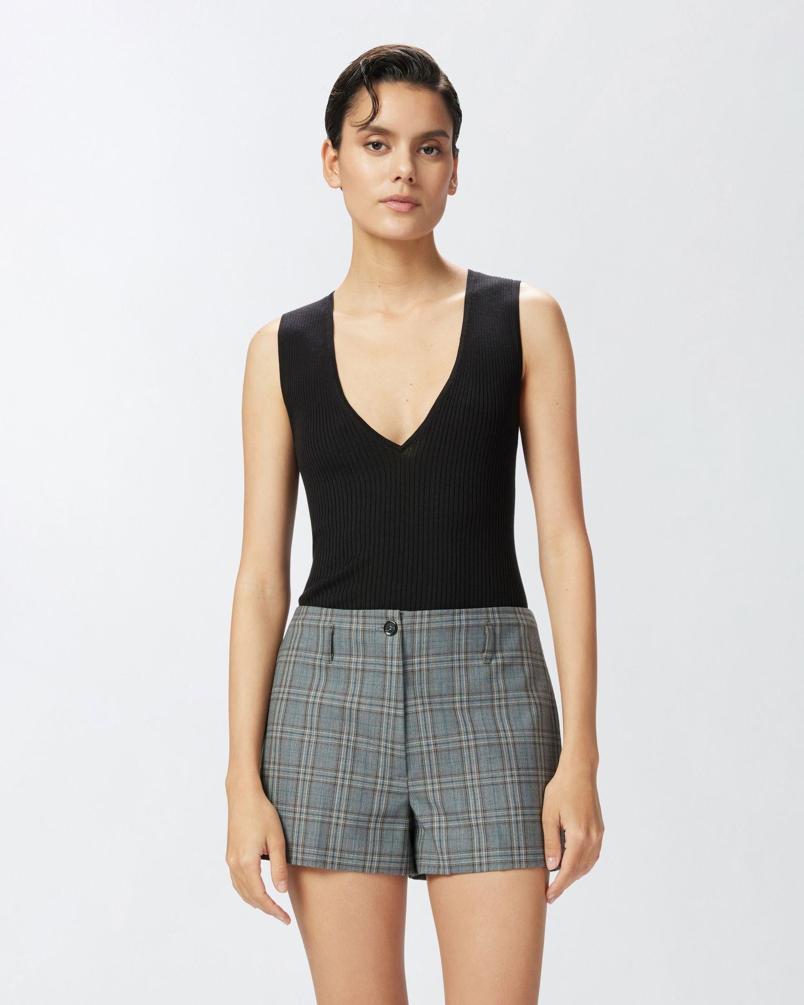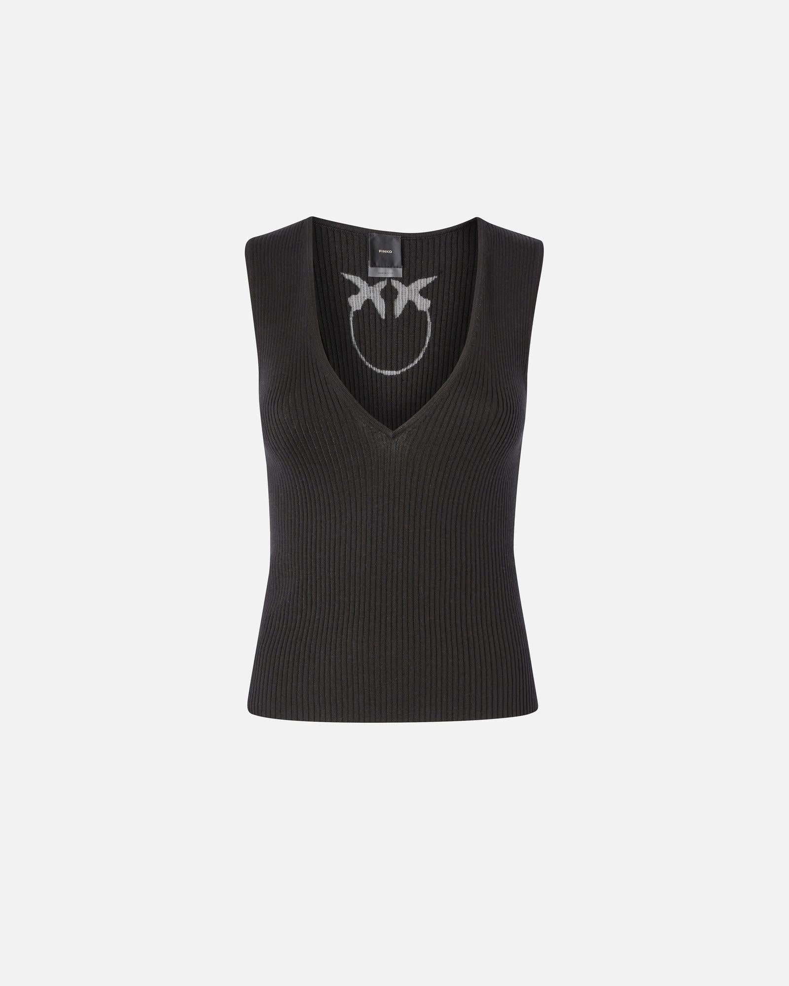 Top a costine misto seta