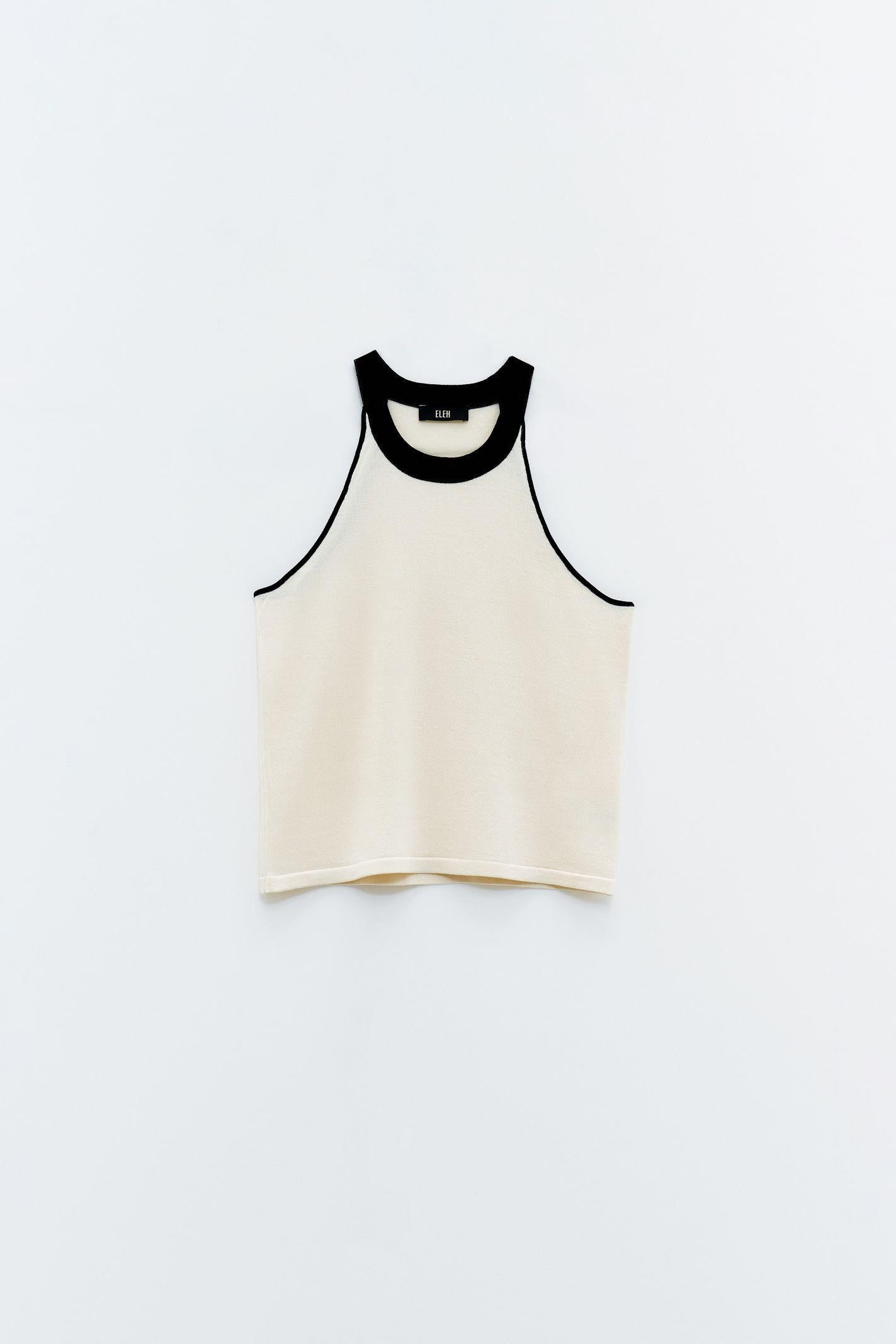 Top cropped con bordatura nera SSEM5005 CREMA ELEH