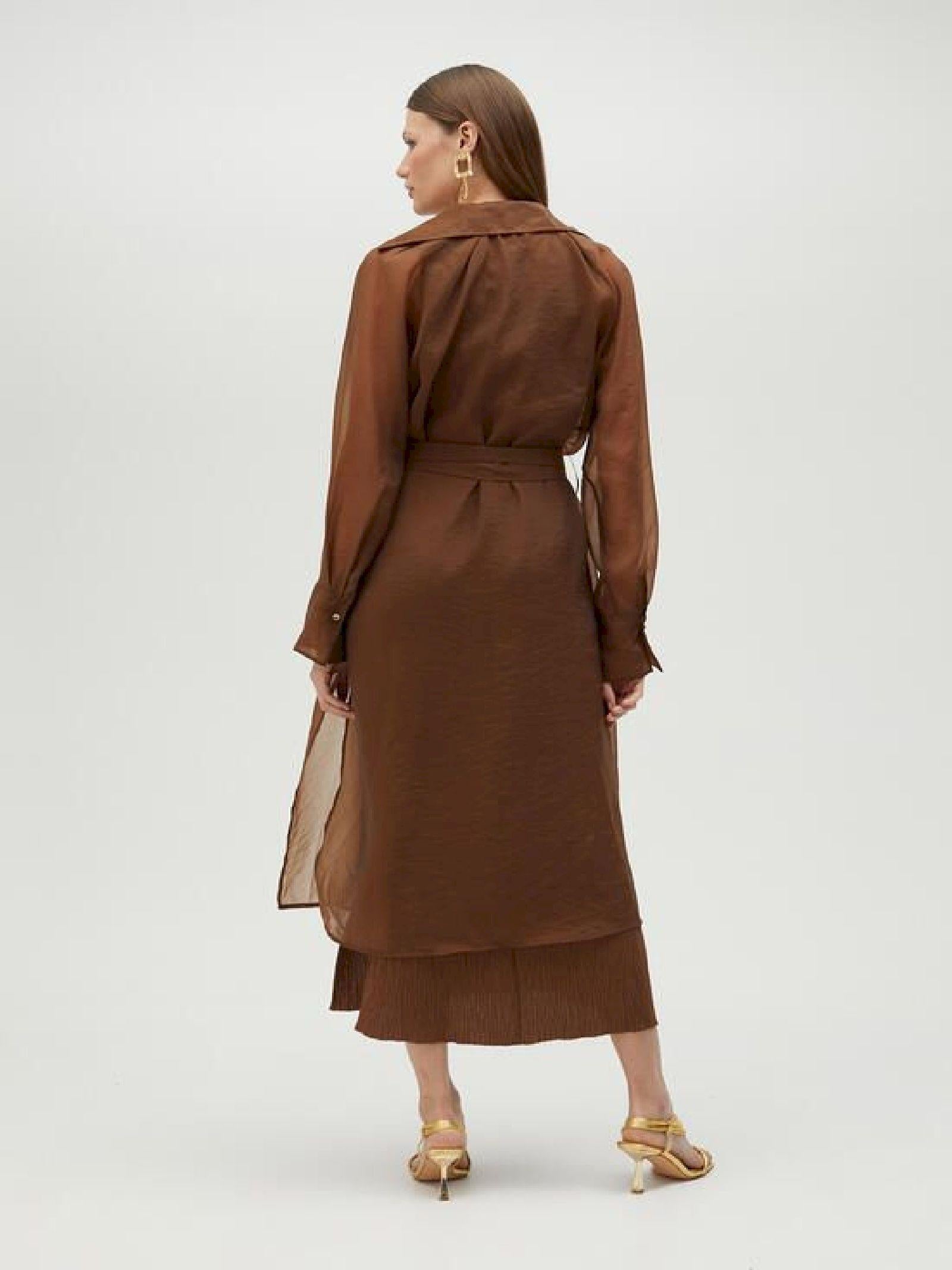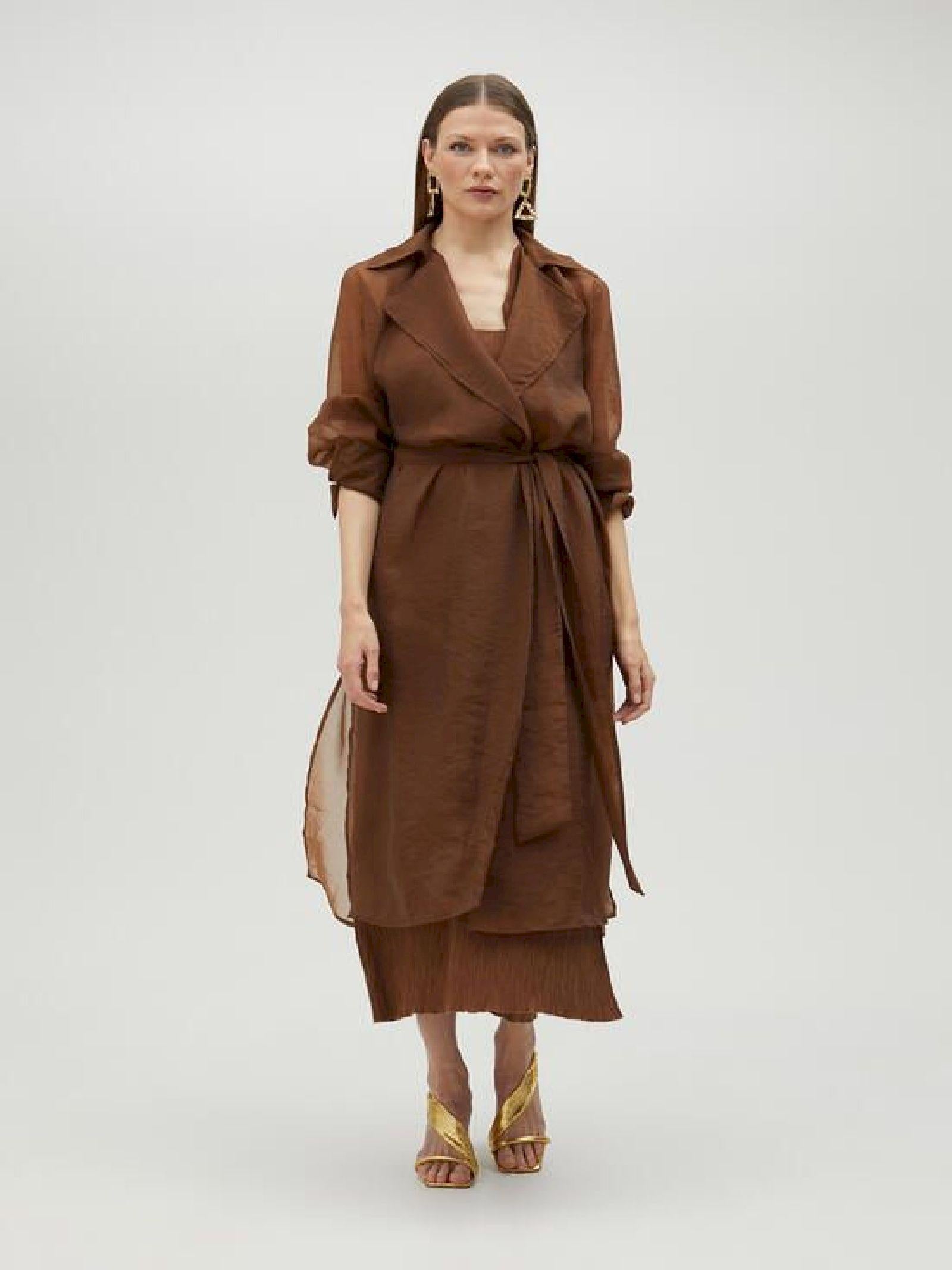Trench lungo in organza con cintura