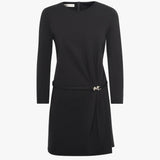 Semplice ma deffetto, questo abito corto si distingue per la sua linea pulita e la cintura abbinata che sottolinea delicatamente il punto vita. Le maniche lunghe lo rendono ideale anche per la mezza stagione, mentre la vestibilità dritta dona comfort e versatilità. Un capo essenziale e sofisticato, perfetto per passare con stile dal daywear allaperitivo.