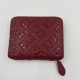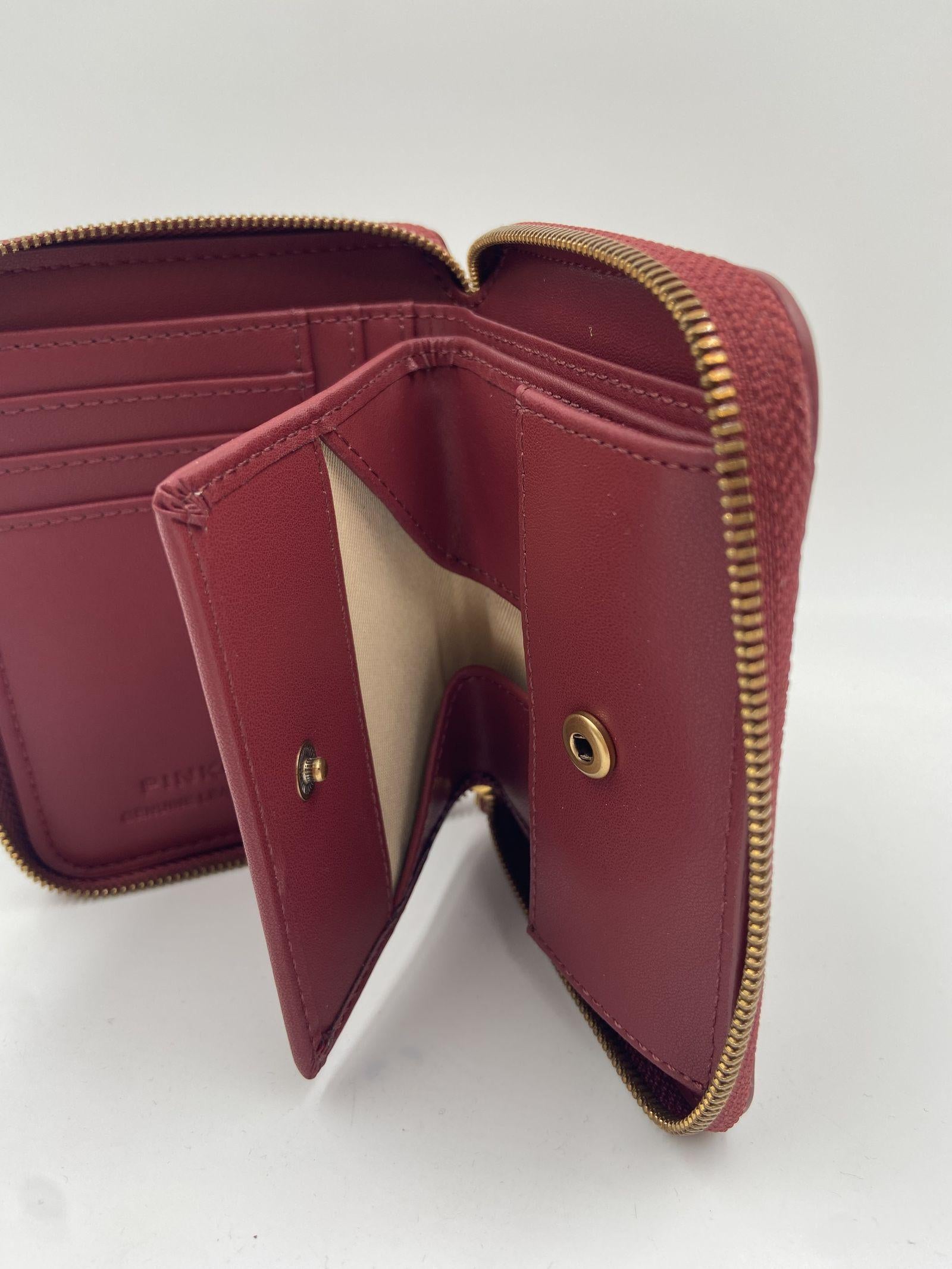 Portafoglio di piccole dimensioni in morbida pelle mano seta con fantasia Love Birds Monogram realizzata con tecnica imprimè, che crea un particolare effetto tipo trapuntato in superficie. Il portafoglio di forma quadrata è foderato in polycotton e include spazi per documenti e carte di credito oltre a uno scomparto per monete, ed è chiuso con zip su tre lati. Questo portafoglio femminile è un'icona fra gli accessori della nuova collezione, ed è perfetto da aggiungere alla tua borsa Love Bag.Dimensioni: H 10cm x L 12cm x P 2cm