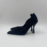 Decolletè realizzata in pelle scamosciata, caratterizzata da punta affusolata e apertura laterale, tacco a stiletto alto 9 cm, suola in cuoio. Questa decolletè dalla silhouette elegante e sinuosa diventa un must-have del guardaroba femminile.