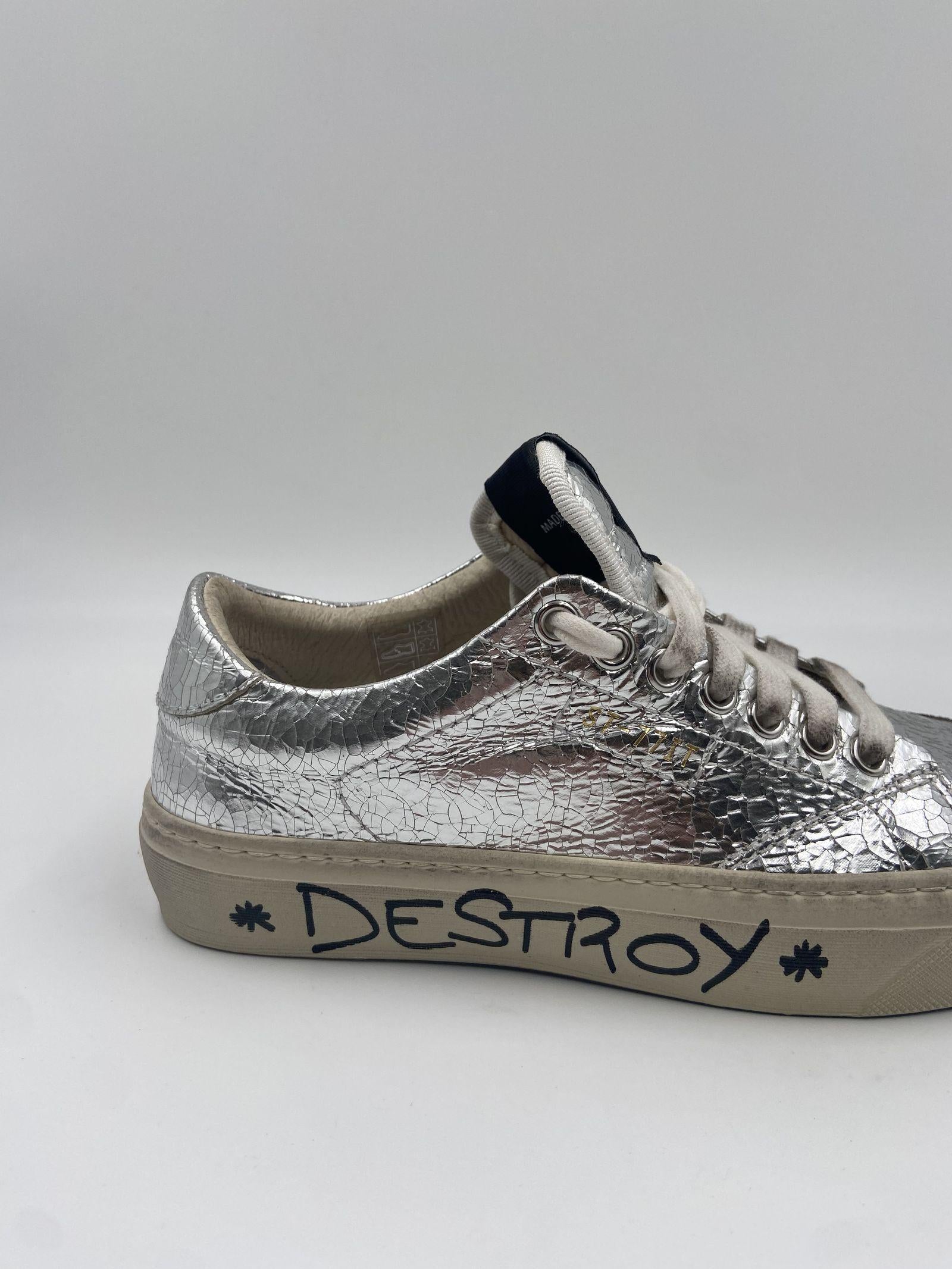 Distinguiti con stile grazie a queste sneakers in pelle laminata con effetto crack, un mix perfetto di modernità e carattere. La suola in gomma con graffiti e logo laterale aggiunge un tocco street-style, mentre la chiusura stringata garantisce una vestibilità sicura e comoda. La fodera interna in tessuto e il sottopiede Fusbet estraibile assicurano il massimo comfort durante tutto il giorno. Con una piattaforma di 30 mm e una suola alta 30 mm, queste sneakers offrono una silhouette slanciata senza rinunciare alla praticità.