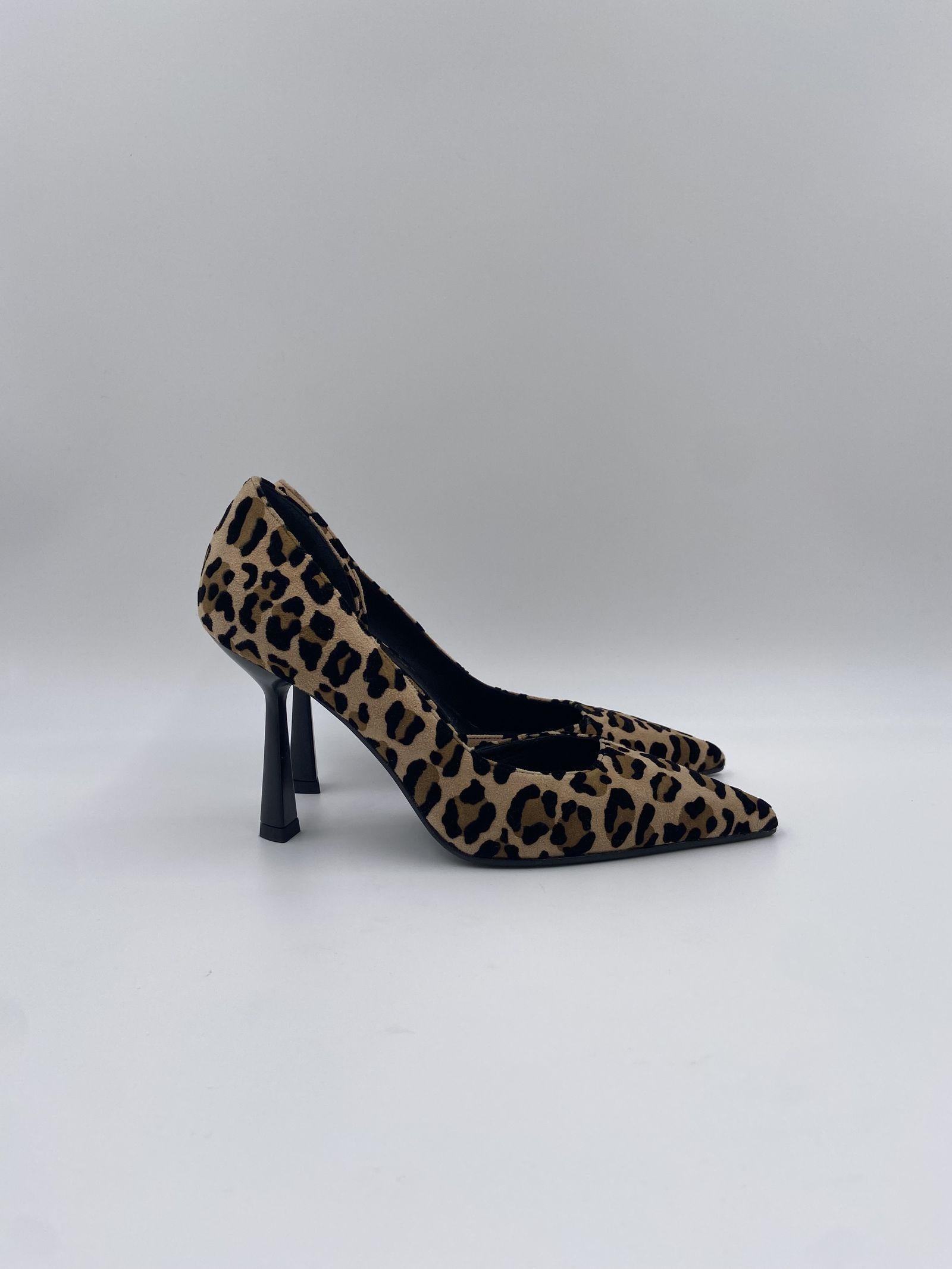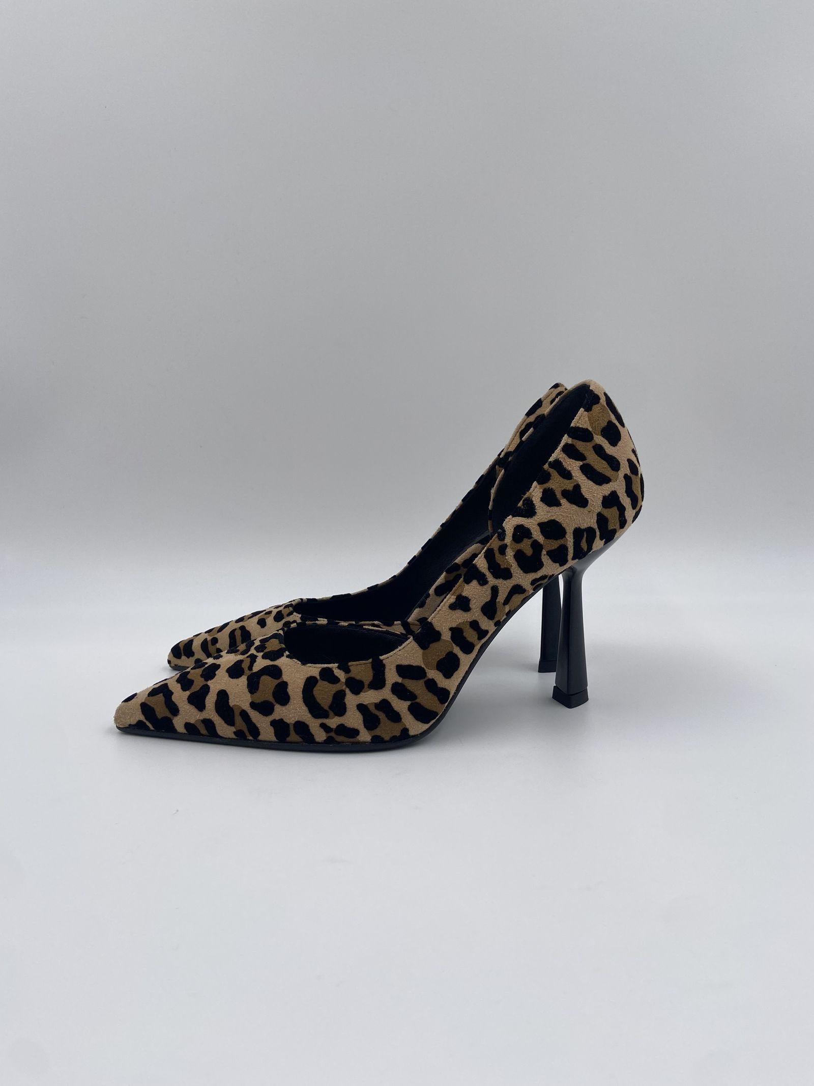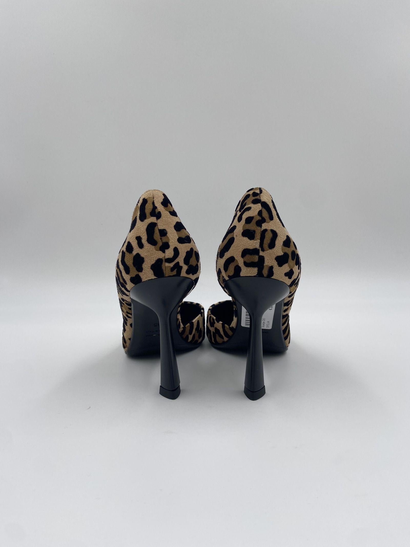 Dècolletè realizzato in cavallino maculato, dalla punta affusolata, con dettaglio tacco e interno nero, e un'apertura laterale, suola in cuoio, calzata regolare, altezza tacco 9 cm.