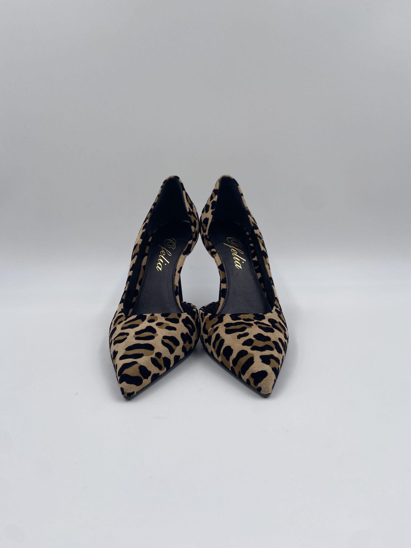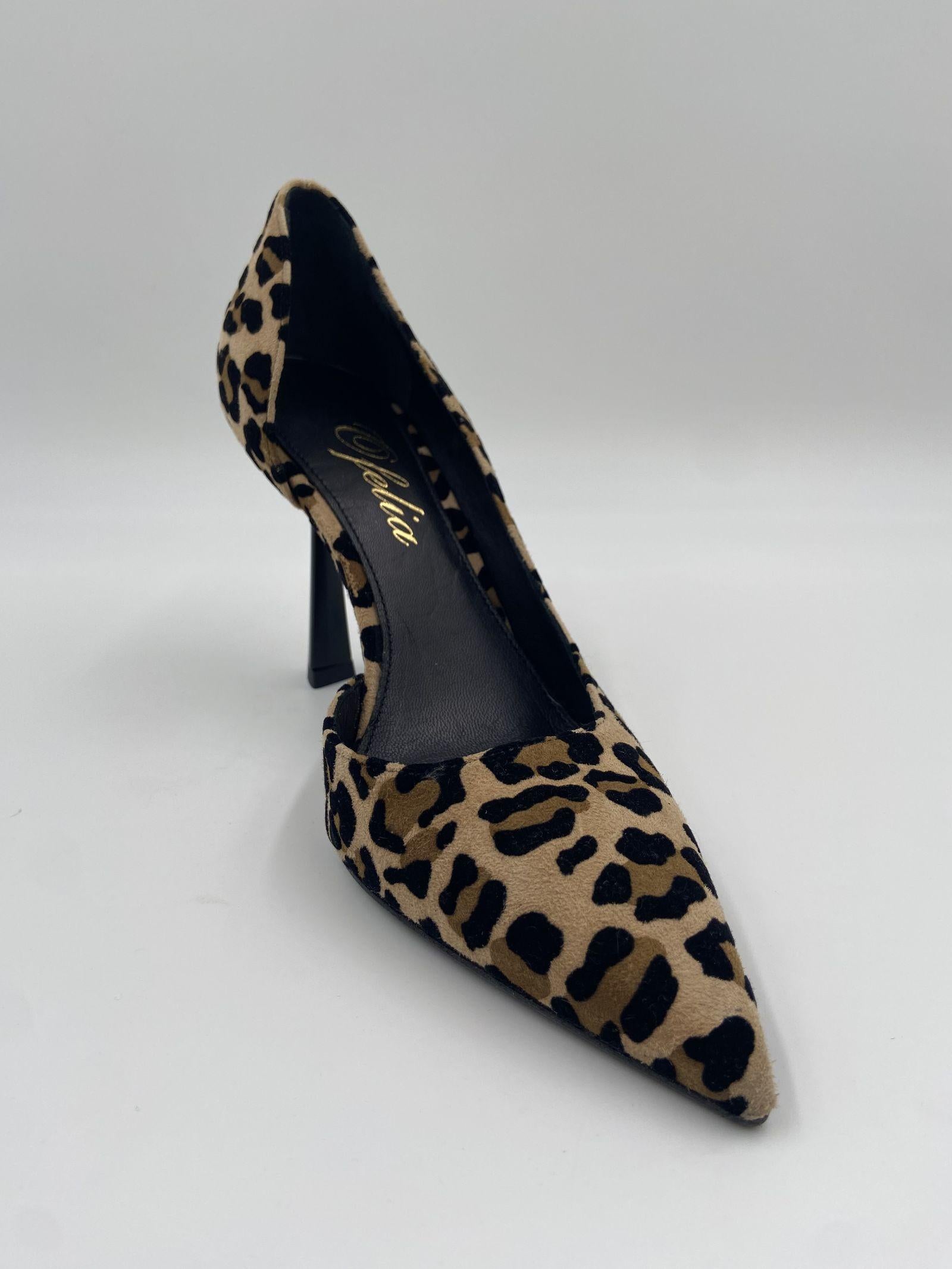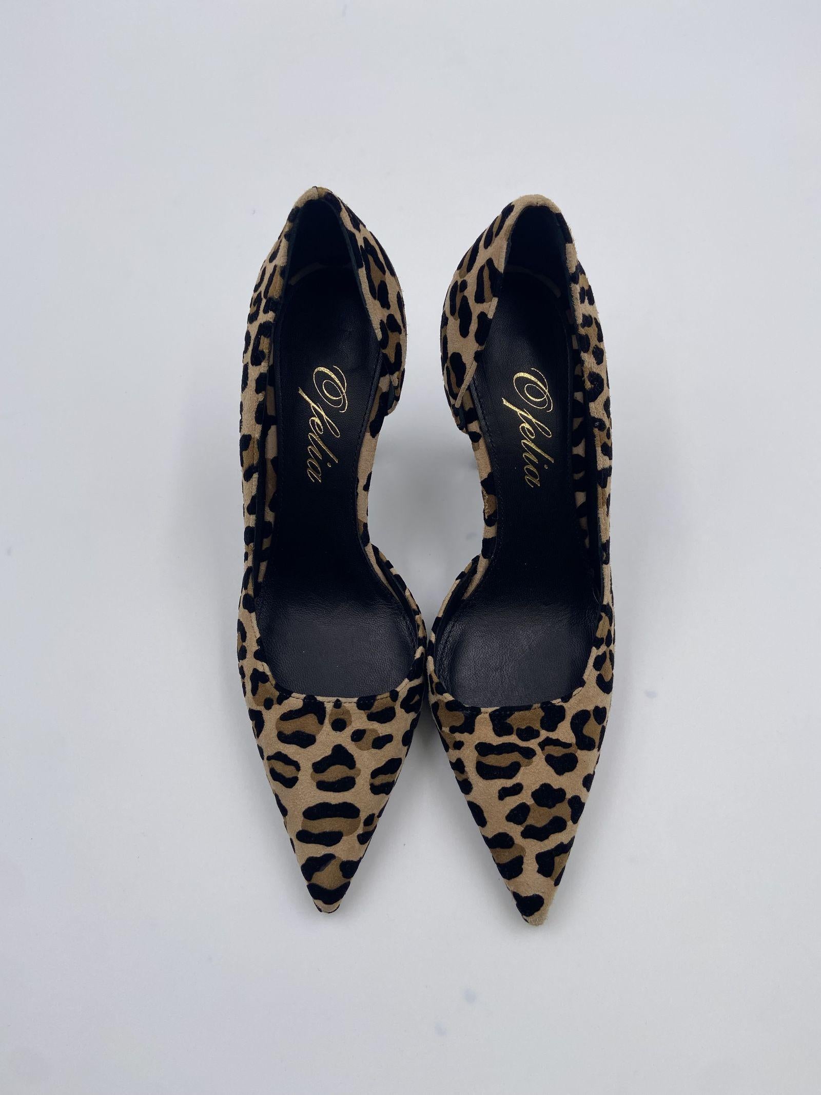 Dècolletè realizzato in cavallino maculato, dalla punta affusolata, con dettaglio tacco e interno nero, e un'apertura laterale, suola in cuoio, calzata regolare, altezza tacco 9 cm.