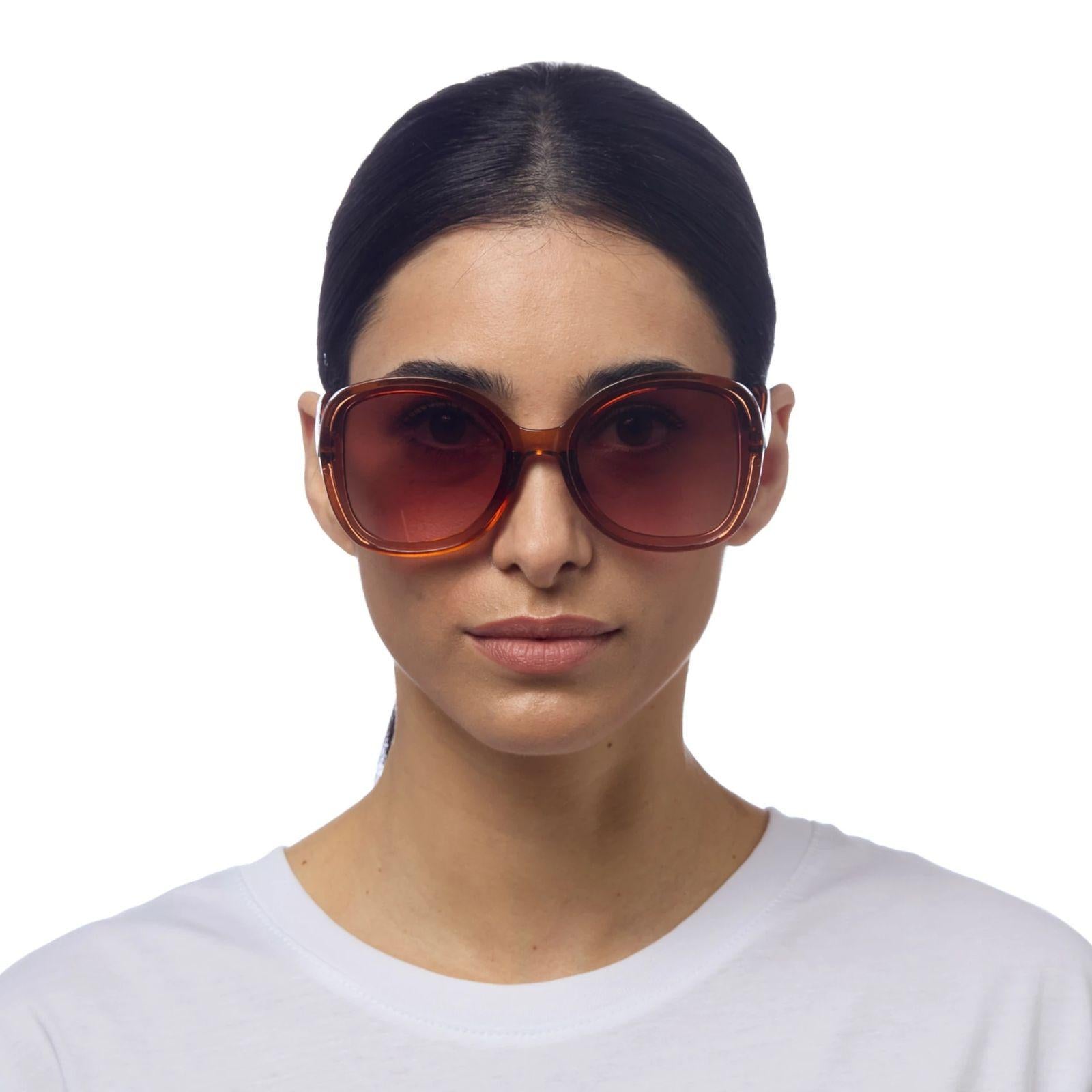 Anna è un occhiale da sole premontato Butterfly con montatura soft touch e lenti overlap.Colore montatura: Marrone trasparente Colore lenti: Light rosa