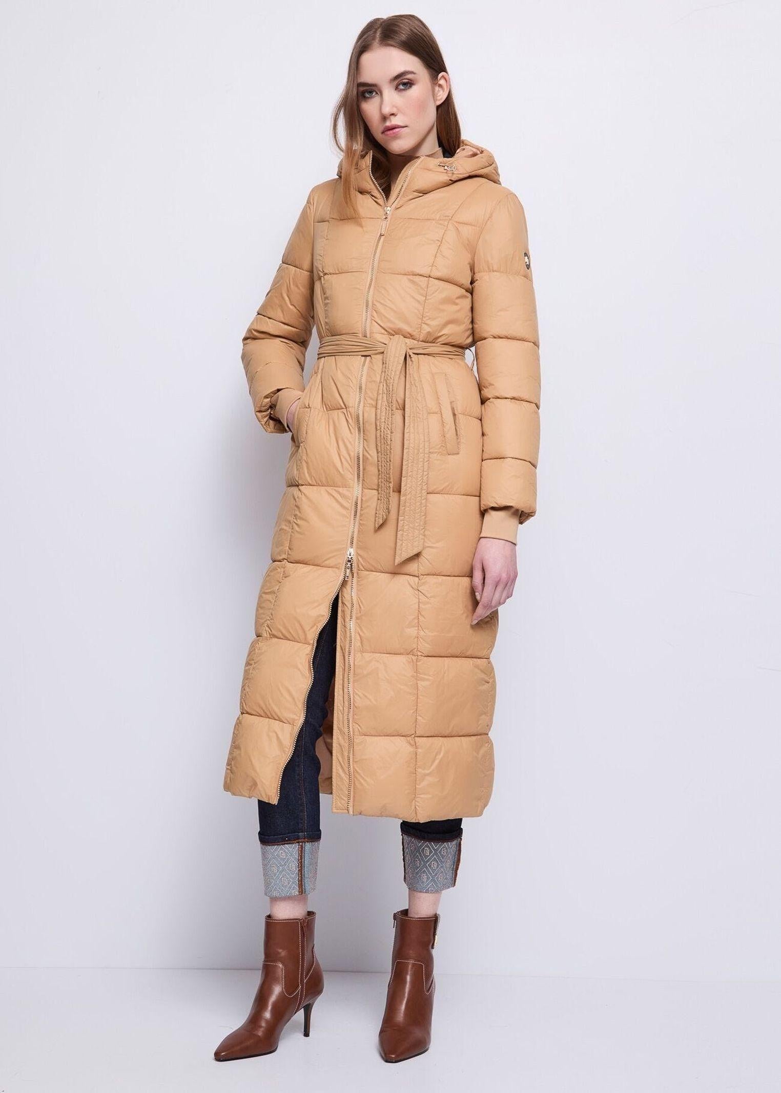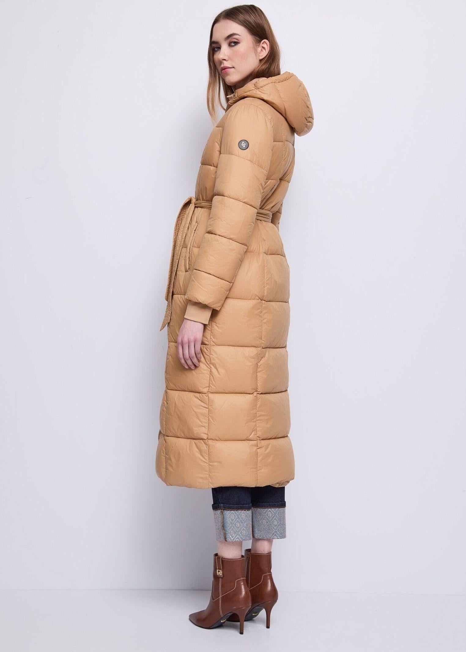 Piumino lungo in nylon ultraleggero con cappuccio e coulisse, cerniera dorata e tasche a filetto, impreziosito dal logo GJ in metallo e dalla cintura in vita che valorizza la silhouette. Un capo che unisce comfort e raffinatezza, perfetto per affrontare la stagione fredda con eleganza urbana. Il design leggero e femminile lo rende ideale per completare look sofisticati e contemporanei senza rinunciare alla praticità.
