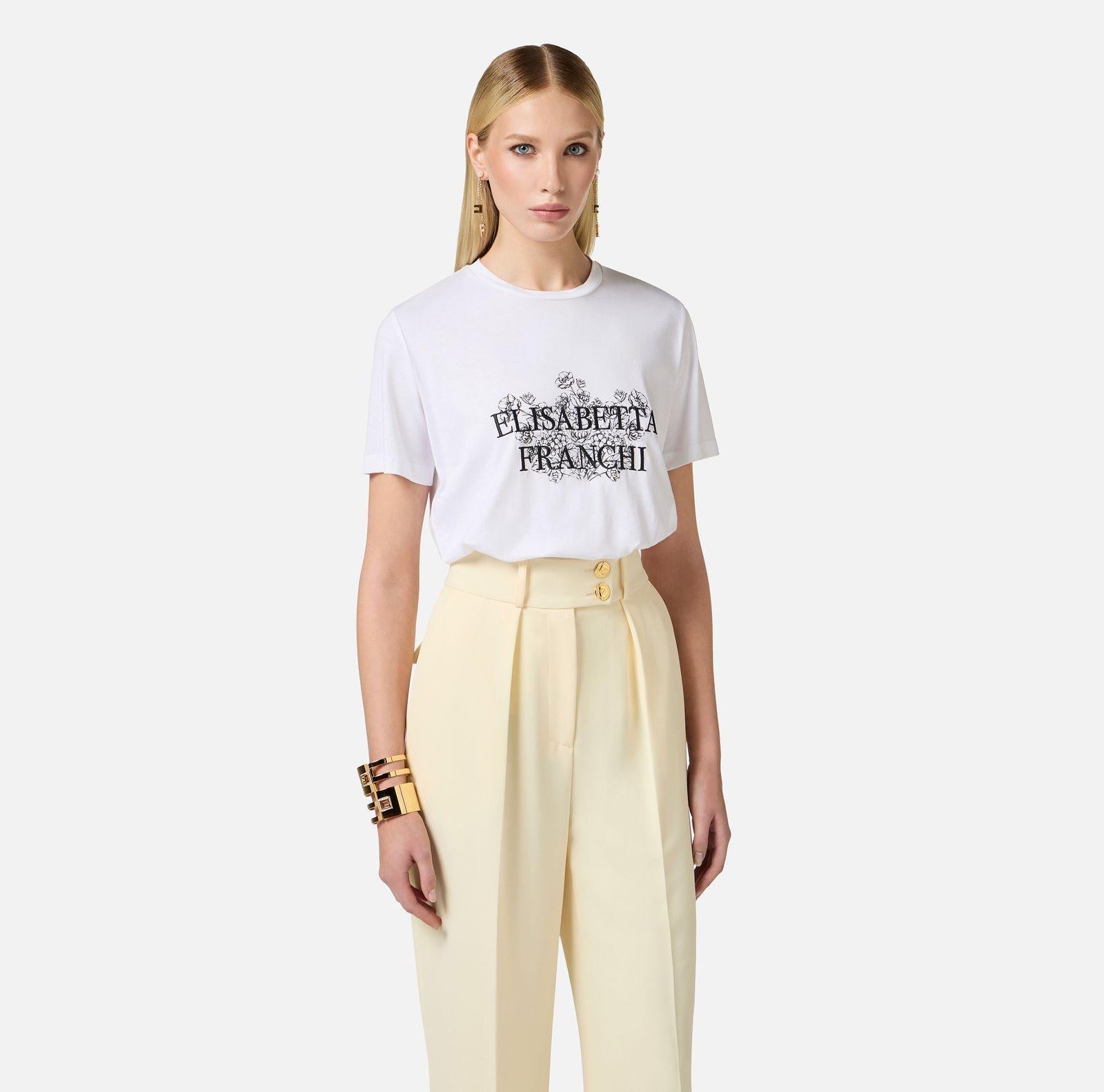 T-shirt realizzata in jersey di cotone leggero a maniche corte, ingentilita dalla stampa frontale con motivo botanico e dal logo ricamato in filo, vestibilità regular.