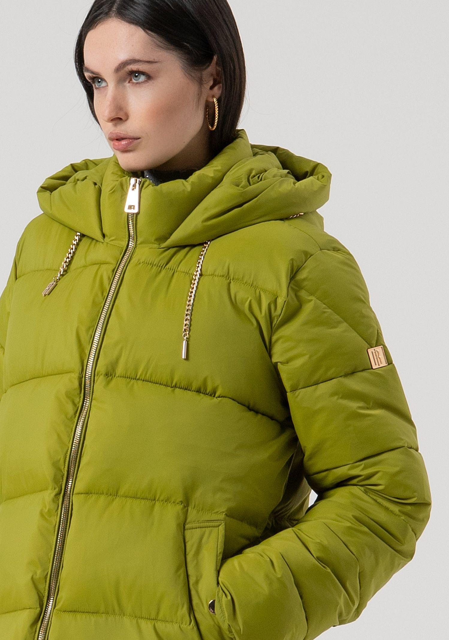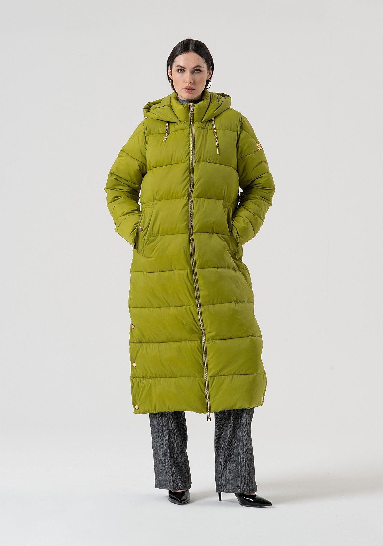 Piumino regular lungo caratterizzato da unapertura centrale con zip per una chiusura pratica e protettiva. Dotato di cappuccio per una maggiore copertura e tasche sui fianchi che uniscono funzionalità e stile. Gli spacchi laterali sul fondo, chiudibili con bottoni, aggiungono versatilità e movimento al capo, mentre le maniche lunghe completano il design, garantendo comfort e calore nelle giornate più fredde. Perfetto per affrontare linverno con un tocco moderno e funzionale.