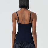 Top a canotta con scollatura a V e spalline sottili, impreziosito da strass in tinta. Questo top è perfetto indossato come sottogiacca per ottenere un look più sofisticato.