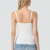 Top a canotta con scollatura a V e spalline sottili, impreziosito da strass in tinta. Questo top è perfetto indossato come sottogiacca per ottenere un look più sofisticato.