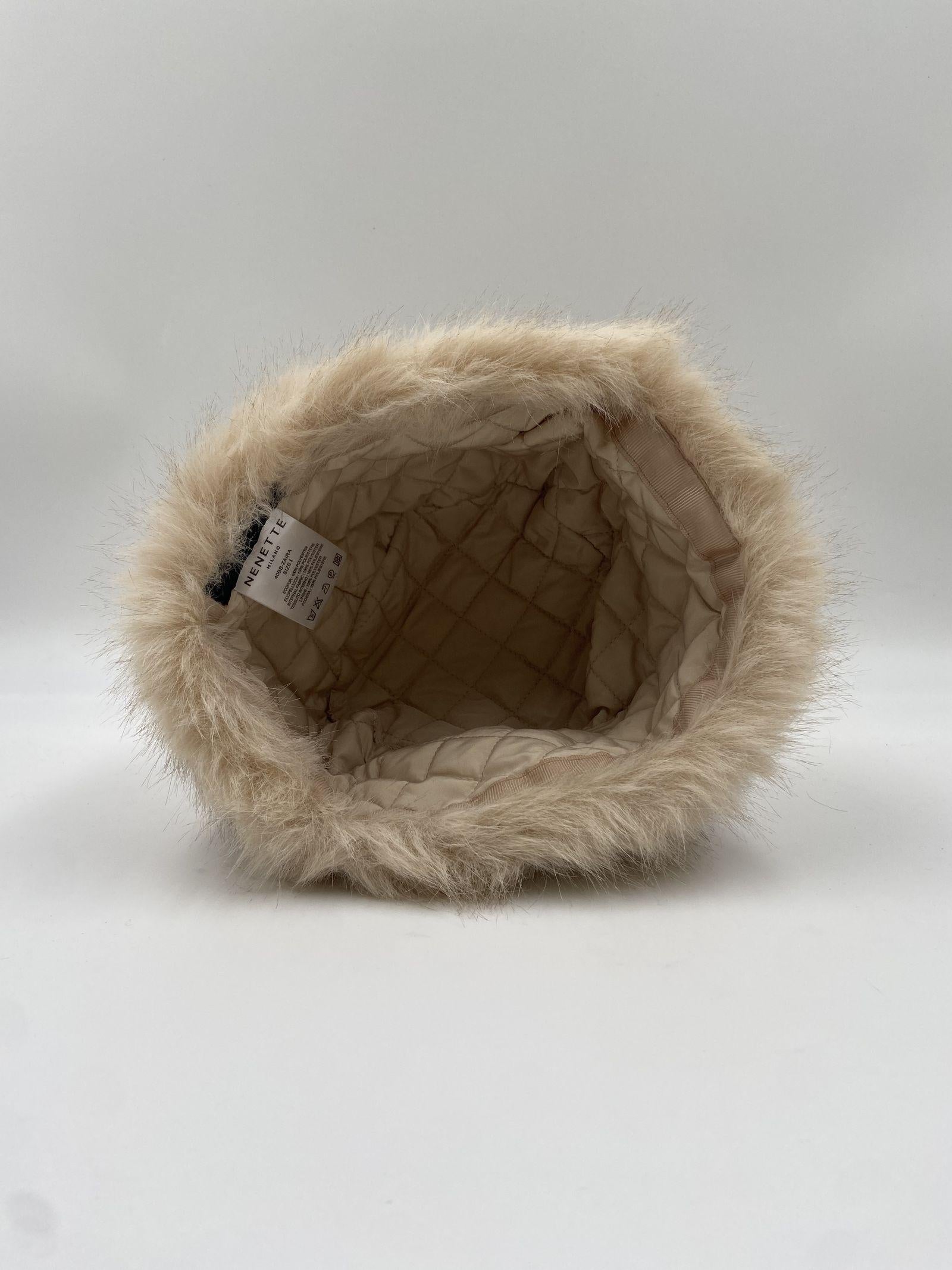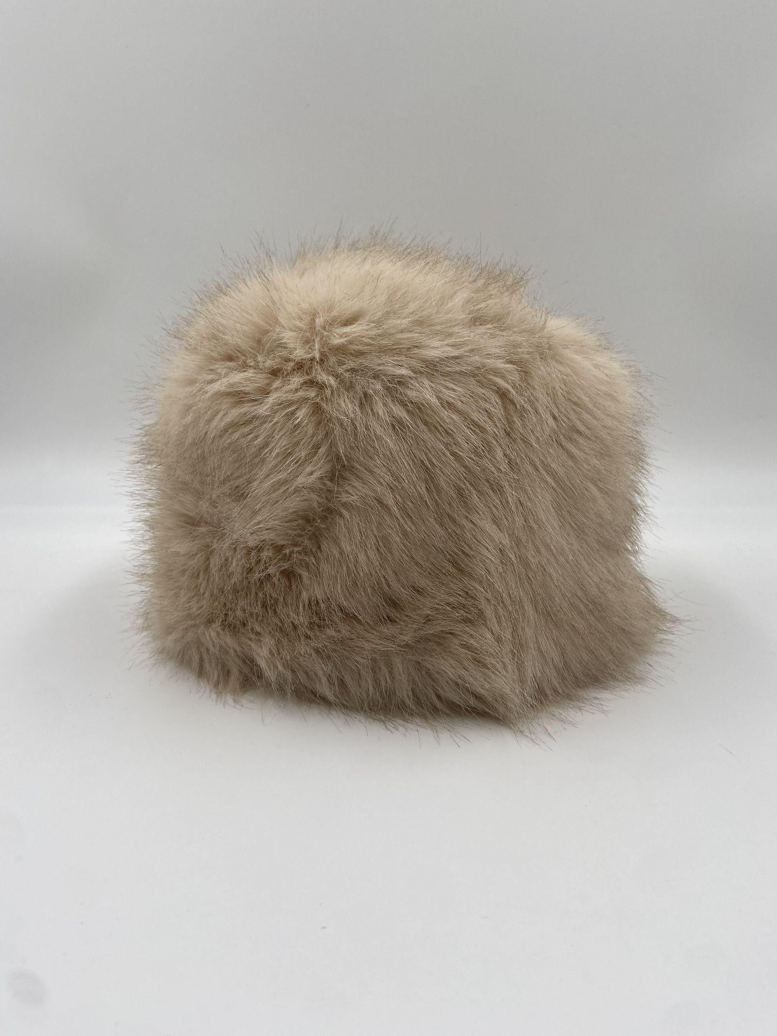 Colbacco in ecovolpe, morbido e avvolgente, dal design elegante e senza tempo. Un accessorio versatile che completa con stile look invernali, aggiungendo un tocco di raffinatezza.