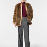 Ecopelliccia in ecomurmasky con bordi a contrasto, sinonimo di stile e praticità. Caldo e chic, completa con eleganza i look invernali, aggiungendo un tocco moderno e femminile.