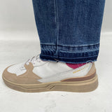 Un classico rivisitato in chiave contemporanea: questo jeans mom fit a vita alta e gamba dritta valorizza la silhouette con una vestibilità comoda e strutturata. Dotato di chiusura con cerniera e bottone metallico, presenta tasche frontali allamericana e un orlo a taglio vivo per un tocco casual e moderno. Il retro è impreziosito dalla salpa logata, dettaglio distintivo dal gusto autentico.