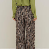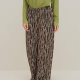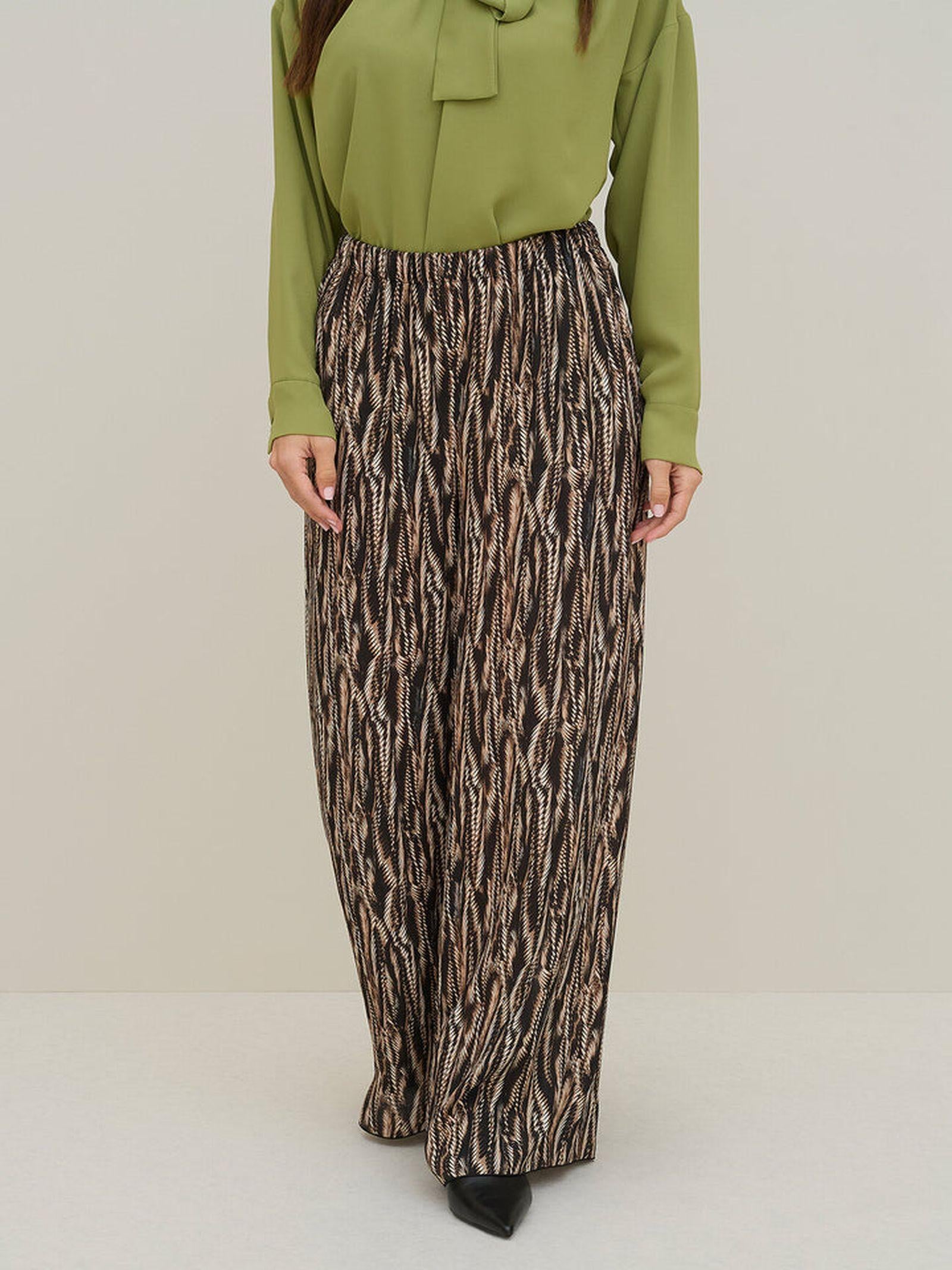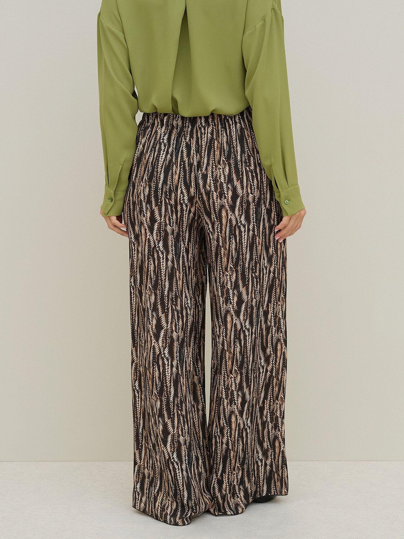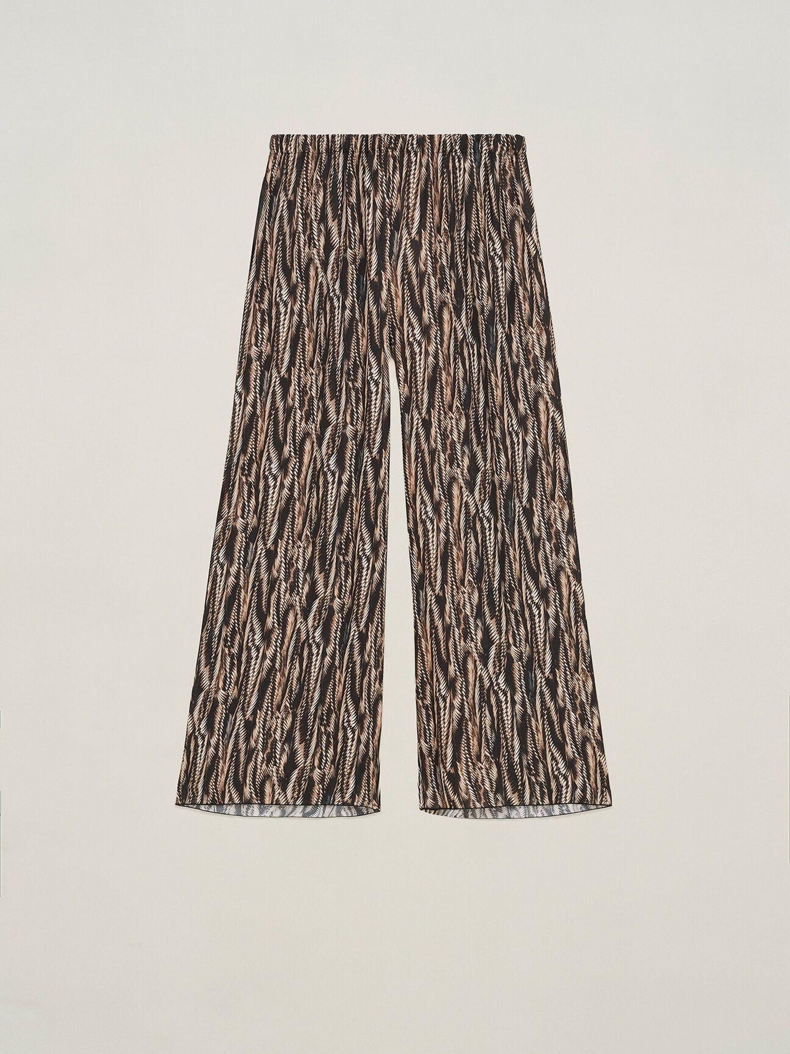 Pantalone largo in viscosa, con stampa fourrure, con vita e cavallo basso ed elastico in vita, senza tasche. Questo pantalone è ideale per outfit moderni e occasioni speciali.