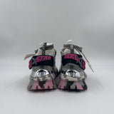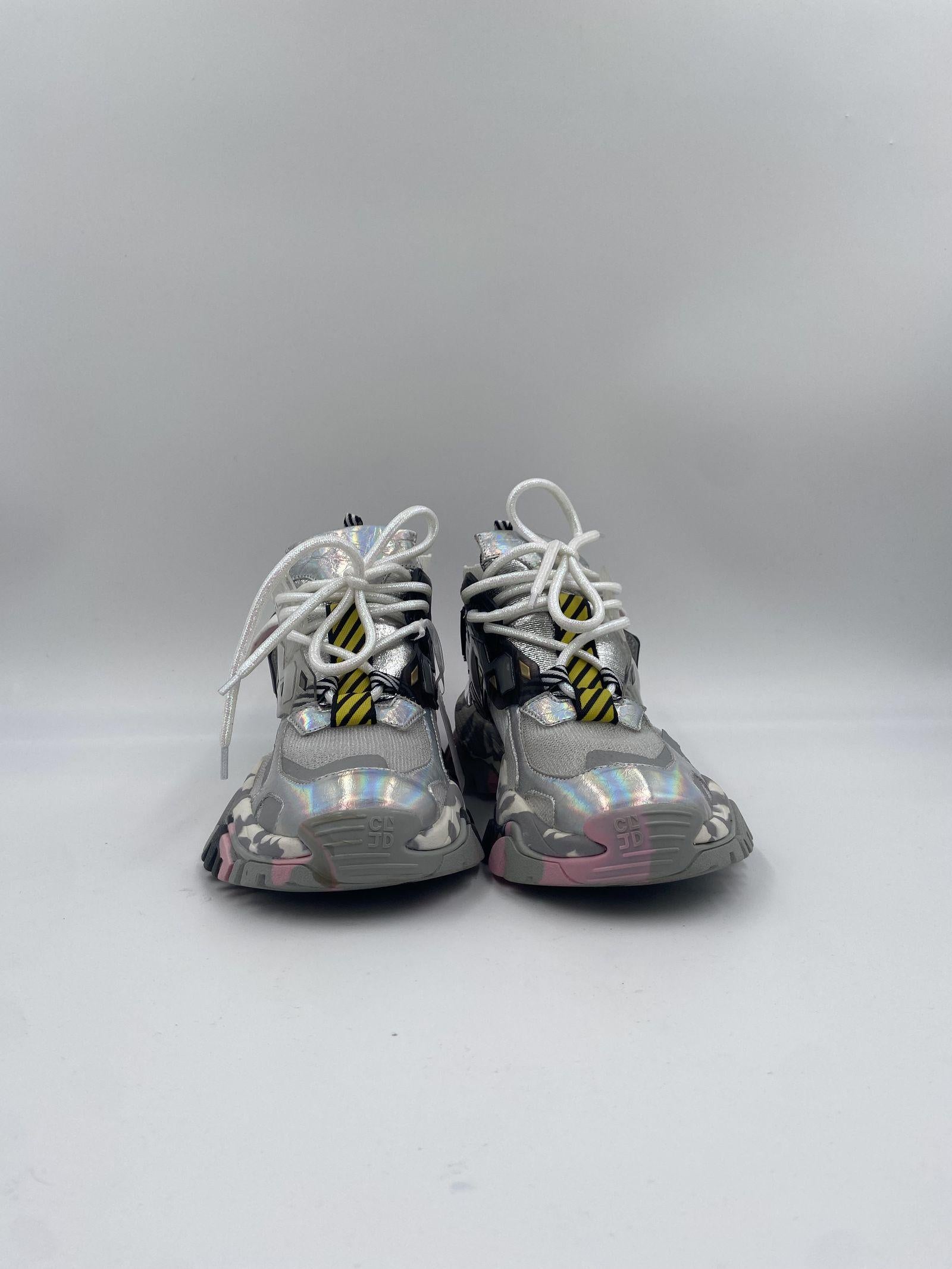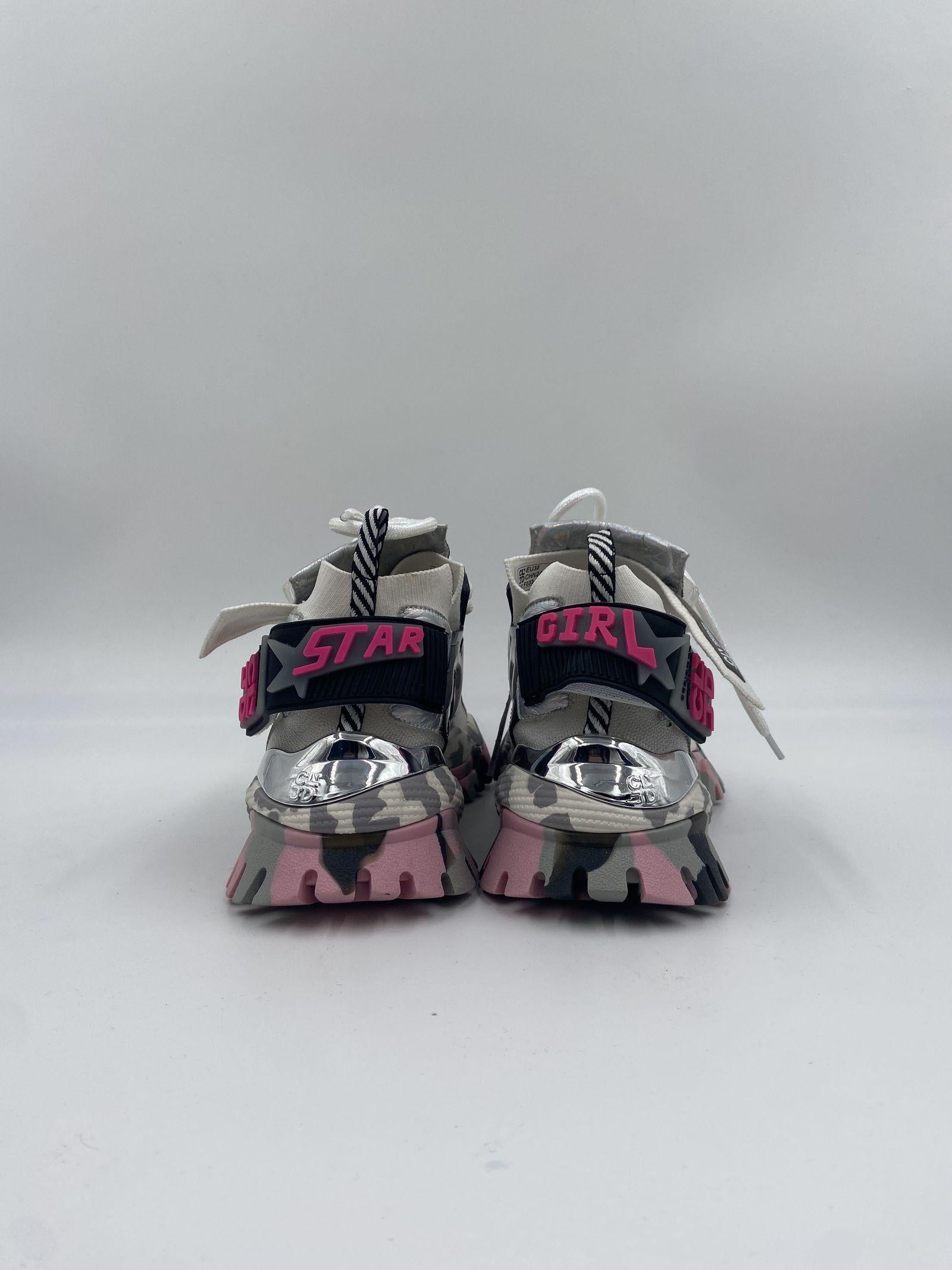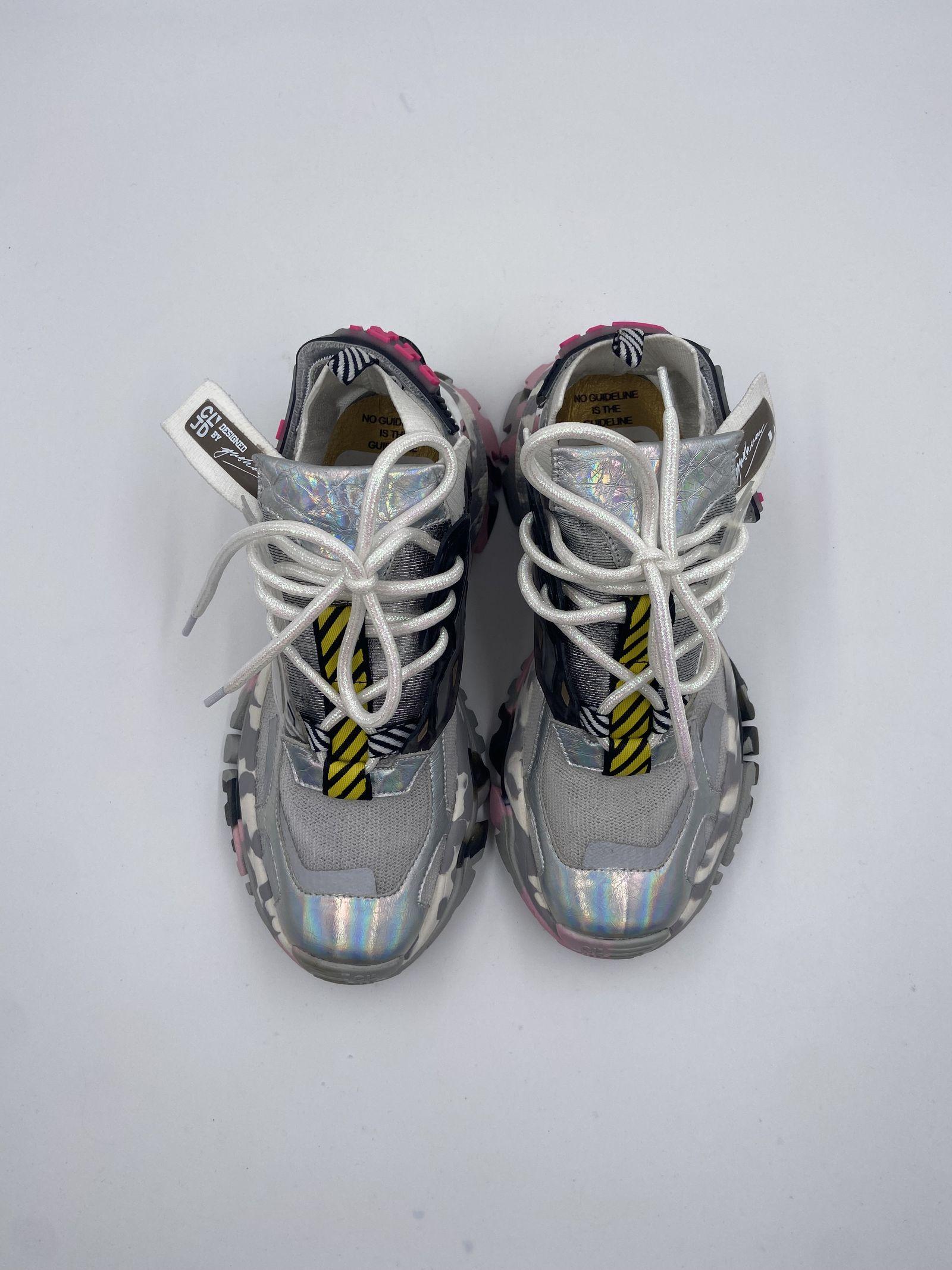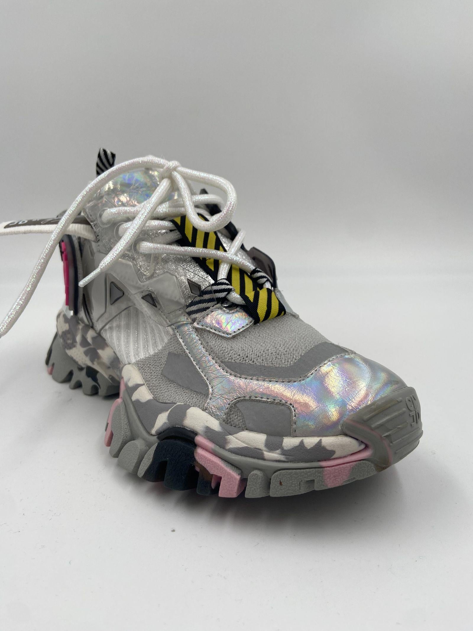 Sneakers multipatch in pelle, con stampa grigio e rosa, impreziosite da applicazioni in PVC ed airbag laterale, ed occhielli rinforzati in PVC. Hanno una fodera in tessuto, suola in gomma outdoor e inserti in mesh e pvc e un altezza suola 40 mm, un plantare estraibile e lavabile. Con queste sneakers puoi vivere le tue avventure quotidiane con una marcia in più. Un disegn sofisticato che gioca con le palette di colore, materiali e forme unici per rendere il tuo street outfit sensazionale.