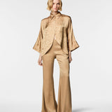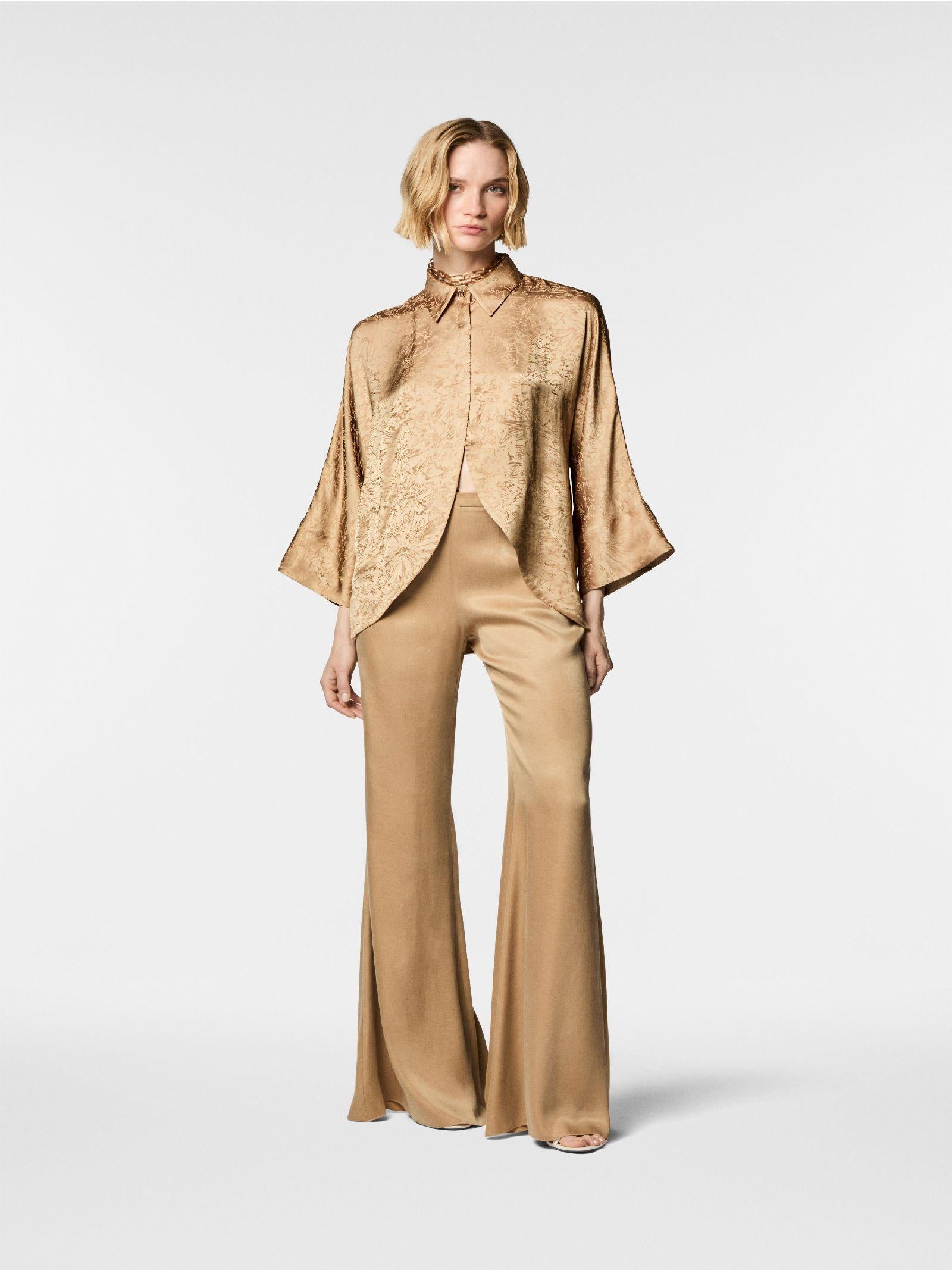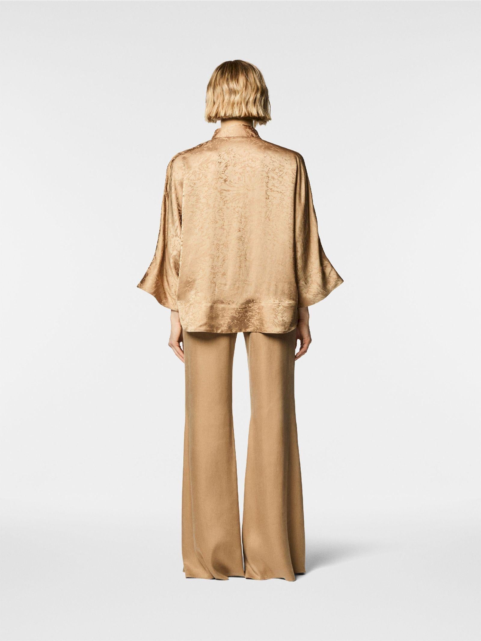 Camicia in jacquard di viscosa dal finish lucente e sofisticato. Ha una linea morbida con maniche ampie e collo classico, perfetta per un look elegante e fluido.