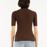 Maglia con collo a lupetto, realizzata in tessuto maglia viscosa, con un motivo coste sul davanti, maniche tre quarti e una lunghezza fino in vita, vestibilità aderente.