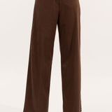 Pantalone realizzato in suede, dalla vestibilità gamba larga, caratterizzato da due tasche ampie applicate dietro, chiusura davanti con bottone e zip coperta, passanti in vita.