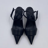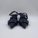 Slingback realizzata in pelle nappata, caratterizzata da fascia sul puntale e cinturino regolabile alla caviglia, fodera in pelle, suola in cuoio, altezza tacco 6 cm, e calzata regolare.