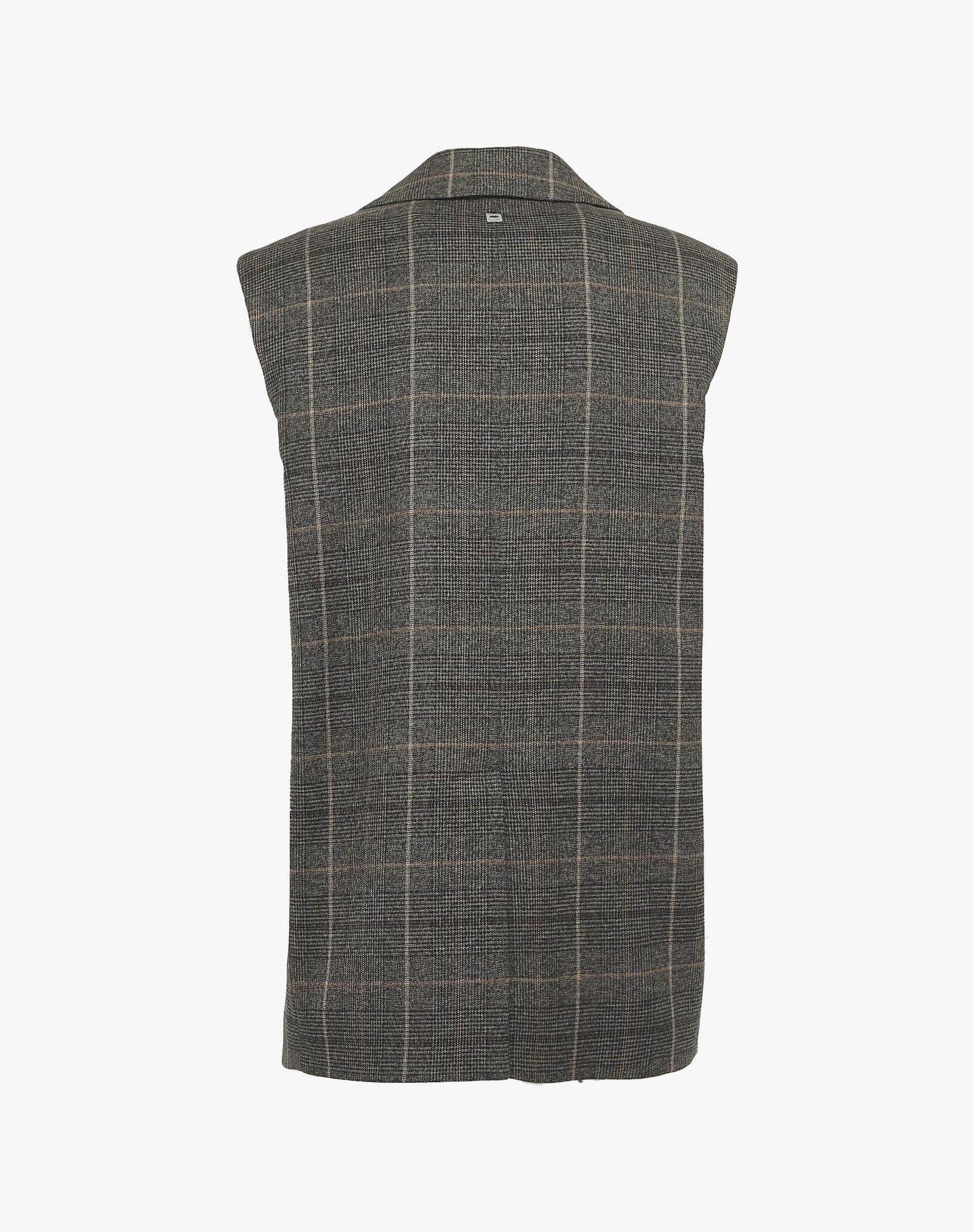 Eleganza maschile, attitude femminile. Questo gilet lungo è l’alternativa cool al classico blazer. Realizzato in tessuto check con dettagli sartoriali, dona carattere anche al look più semplice. Da indossare con camicie fluide, dolcevita o direttamente sulla pelle per un twist audace. Un must-have per il guardaroba di stagione.