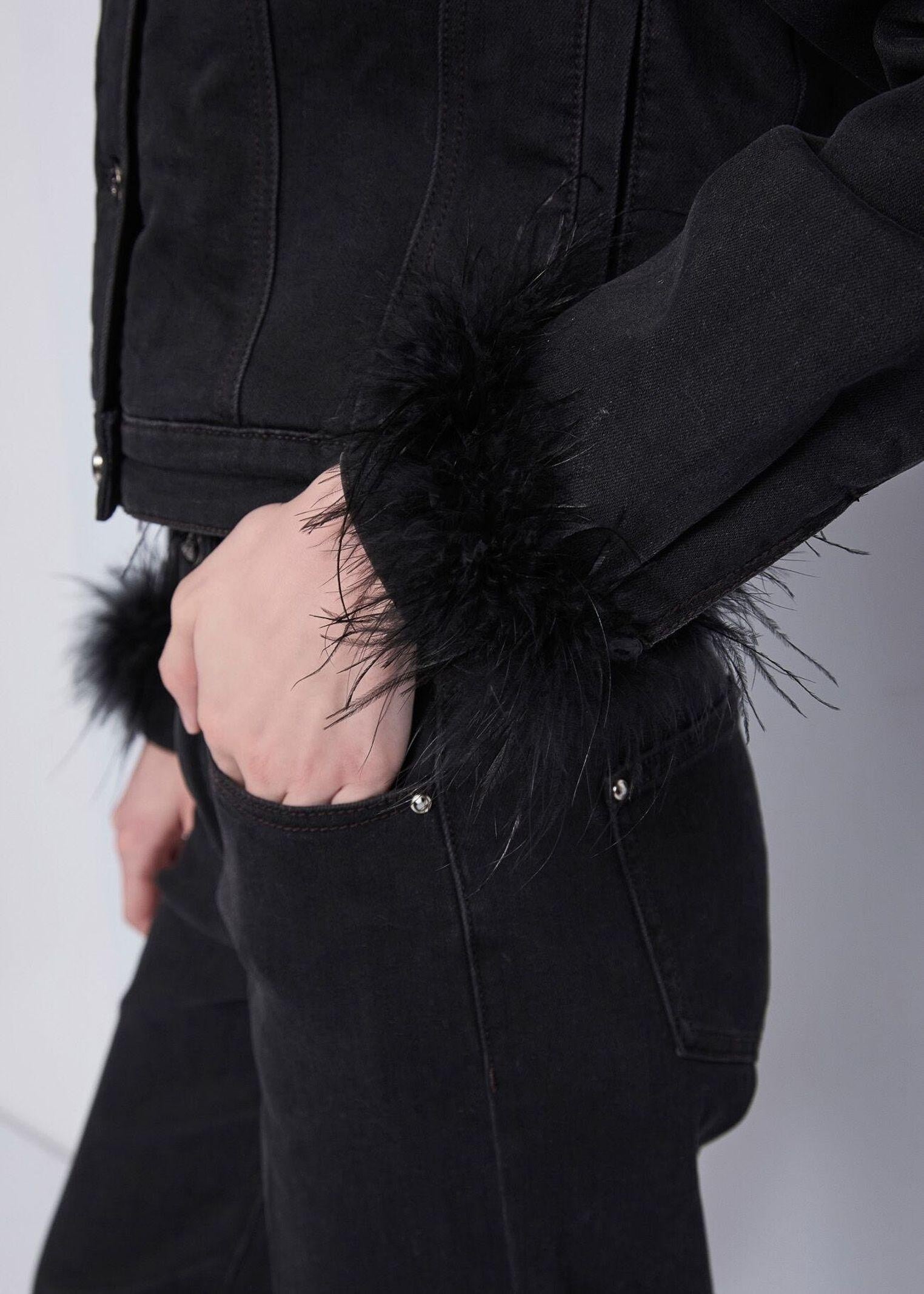 Giubbotto in denim con piume