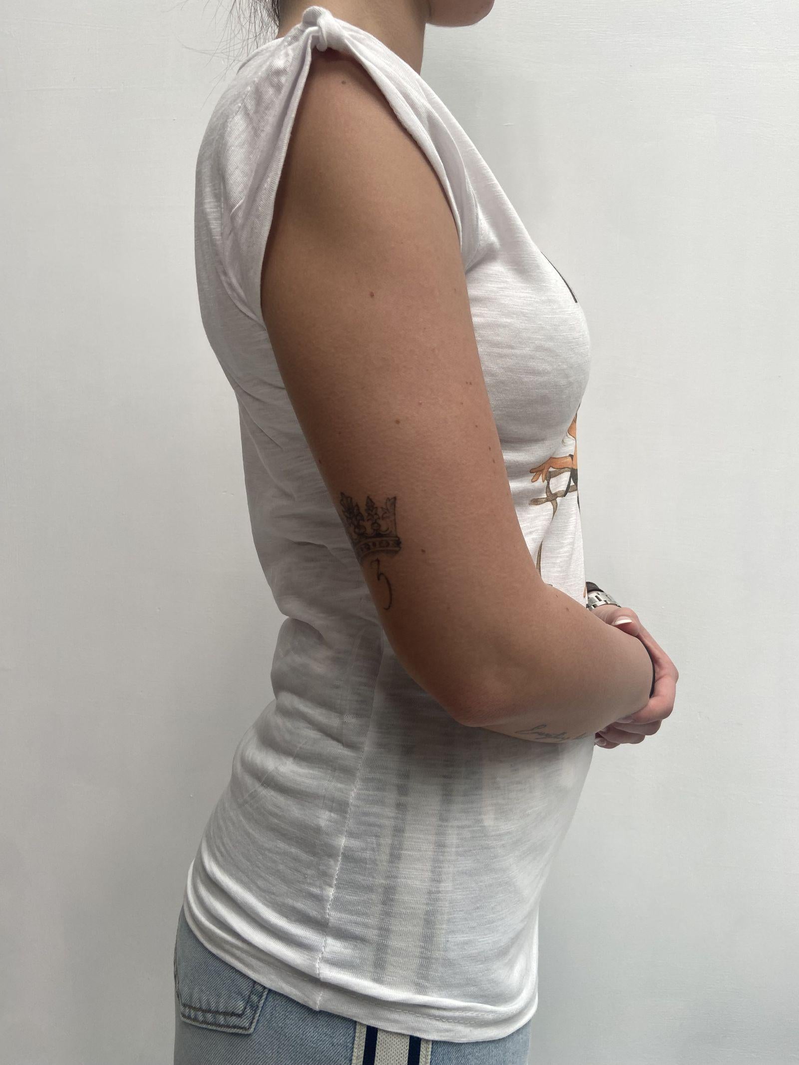 Un capo immancabile nel guardaroba di ogni stagione, questa t-shirt bianca a maniche corte è realizzata in morbido jersey di cotone per garantire comfort e traspirabilità durante tutto il giorno. Il taglio classico con girocollo e maniche corte leggermente strutturate la rende perfetta da indossare da sola per un look pulito oppure sotto giacche, cardigan o camicie per uno stile più stratificato.