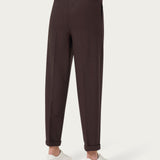 Pantalone carrot con vestibilità tapered, gamba leggermente ampia che si stringe alla caviglia. Caratterizzato da comode tasche laterali ed eleganti pinces, vita elasticizzata ma con i passanti per la cintura per poter aggiungere un tocco di stile personale in più. Il risvolto regolabile aggiunge versatilità al design, permettendo di personalizzarlo in base alle proprie esigenze.