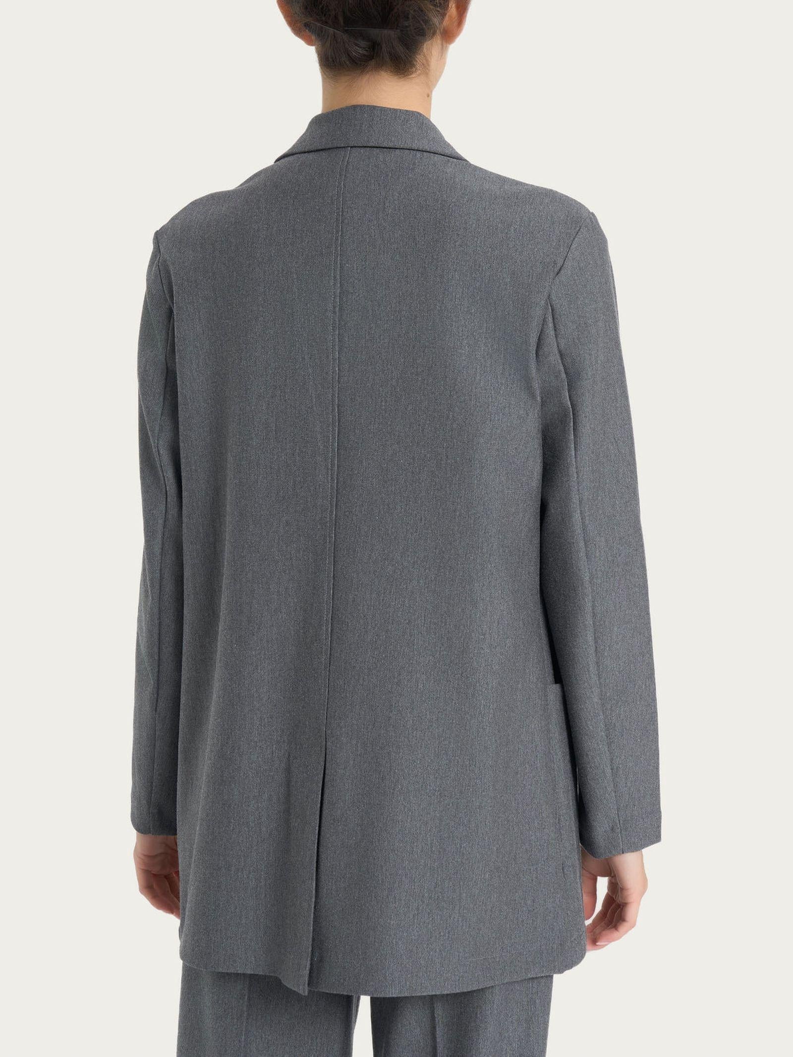 Giacca destrutturata monopetto, calda e confortevole, ideale per la stagione invernale. Presenta un raffinato collo a lancia con revers e chiusura a un bottone che la rende versatile, e tasche che aggiungono praticità al capo.
